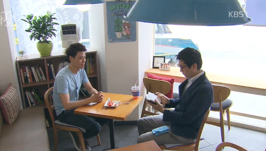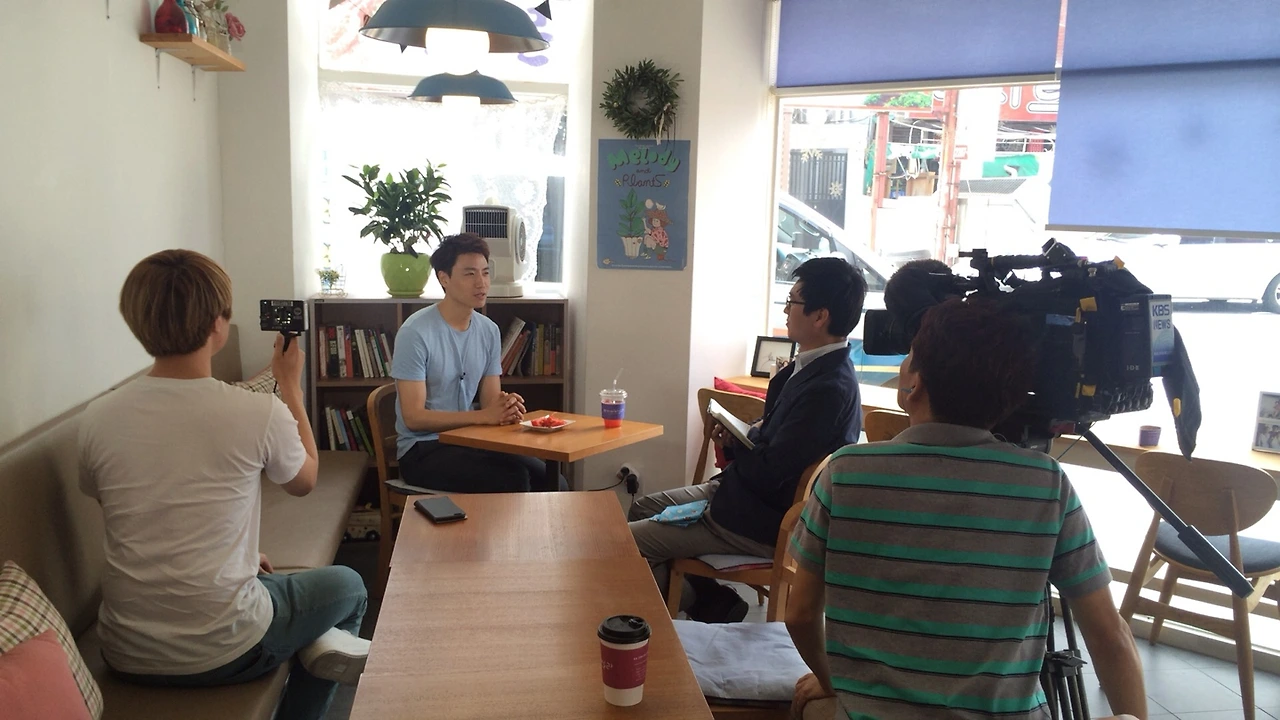 인터뷰는 내 생각을 잘 정리해서 순조롭게 진행했다. 약 1시간 정도 촬영했는데 NG 한 번 내지 않았다. 이상할 정도로 잘했다. 사실 재미있었다. 그렇게 큰 카메라를 본 것이 신기했다. 그 카메라에 KBS라고 쓰인 것도 신기했다. 2015년 상반기에 한국 직업방송 녹화방송에 출연한 적이 있었는데, 그때의 학습효과가 발휘된 것 같다. 1시간 촬영분은 실제 방송에서 2분 30초로 편집되어 나왔다. 사실 인터뷰로 2분 30초면 정말 많이 나온 것이다. 나의 인터뷰뿐만 아니라 카페에서 일하는 아르바이트생의 인터뷰와 근무하는 모습도 꽤 많이 나왔다. 그 친구도 정말 값진 경험을 했다며 부끄러워하면서도 좋아했다.