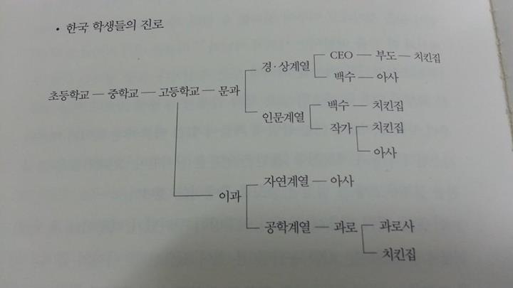 우리나라 치킨집은 전 세계 맥도널드 지점(3만 5,429개, 2013년 기준)을 합한 수보다 많은 많은 약 3만 6천여 곳이라고 한다. 치킨을 사랑하는 국민이 많은 우리나라에서 치킨집은 퇴직 후 창업의 1순위인 것 같다. 인터넷의 한 유머사이트에 위의 그림은 우리를 웃기면서도 슬프게 한다. 경기침체에 어려워진 기업은 구조조정을 실시하고 조기 은퇴한 직장인들은 퇴직금으로 치킨집을 창업한다. 구조조정이 아닌 정년을 모두 채우고 은퇴하는 사람의 치킨집 창업까지 포함해서 시장은 점점 포화된다. 더욱이 지금은 불황이 아닌 저성장 시기다. 불황이 있으면 다시 호황이 오겠지만 저성장 시기에는 언제 호황이 올지 모른다.