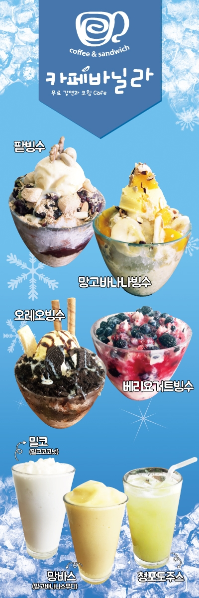 여름에만 메뉴에 올라가는 계절 메뉴인 빙수도 있다. 작년 여름 직전에는 빙수를 직접 배우느라 진땀을 뺐다. 처음 맞는 성수기에 빙수를 익숙하게 해 내야 했다. 그런데 손이 많이 가는 빙수는 그 과정이 복잡했다. 여러 번 연습하고 실습한 후에야 익숙해졌지만 처음에는 정말 만만치 않았다. 두 번째 맞이하는 성수기인 이번 여름 전에는 빙수 메뉴에 대해 재검토했다. 물론 빙수를 할 것이지만 작년과 동일하게 갈 것인지를 생각해야 했다. 카페 바닐라의 빙수는 총 네 가지였다. 팥빙수, 커피빙수, 오레오빙수, 베리요거트빙수 이렇게 넷이다. 이 중 판매 실적과 고객 피드백이 저조한 커피빙수를 제외시켰다. 그리고 새로운 빙수로 망고바나나빙수를 개발했다. 작년부터 손에 익힌 덕분에 생긴 '감(感)'이 큰 역할을 했다. 맛있는 망고에 맛있는 바나나를 합해서 새로운 메뉴를 만들면 더 맛있어진다. 기존 메뉴 중 망고스무디에 사용하는 망고와 바나나주스에 사용하는 바나나, 그리고 망고 아이스크림까지 활용해서 망고바나나빙수를 개발했다. 재료가 많이 들어가기 때문에 판매 가격이 네 종류의 빙수 중 가장 높다. 하지만 한 번 맛 본 고객은 반드시 바닥이 드러날 때까지 그릇을 비운다. 본격적인 성수기인 여름에는 더 많은 인기를 누리길 희망해본다.