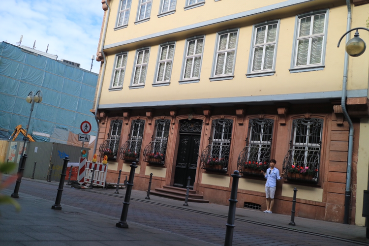 괴테 하우스 앞에는 관광객들이 모여 있었다. 그리고 고등학교 선생님이 이끄는 학생 무리도 있었다. 아마도 모든 학교에서는 한 번씩 오지 않을까. 독일은 유럽에서 상대적으로 문학이 덜 발달한 곳으로 꼽힌다고 한다. 그래서 독일인들은 괴테의 존재를 통해 자긍심을 많이 느낀다고 한다. 사실 괴테는 문인으로서만이 아니라 유능한 관료였다고 한다. 그가 활동한 시기가 산업혁명과 나폴레옹 전쟁이 발생한 격동기였기 때문에 독일 지도자로서 괴테는 민족의 비전을 제시했다고 한다. 독일의 역사에 엄청난 영향을 미친 괴테의 생가 앞에서 나도 사진 한 장을 남겼다.
