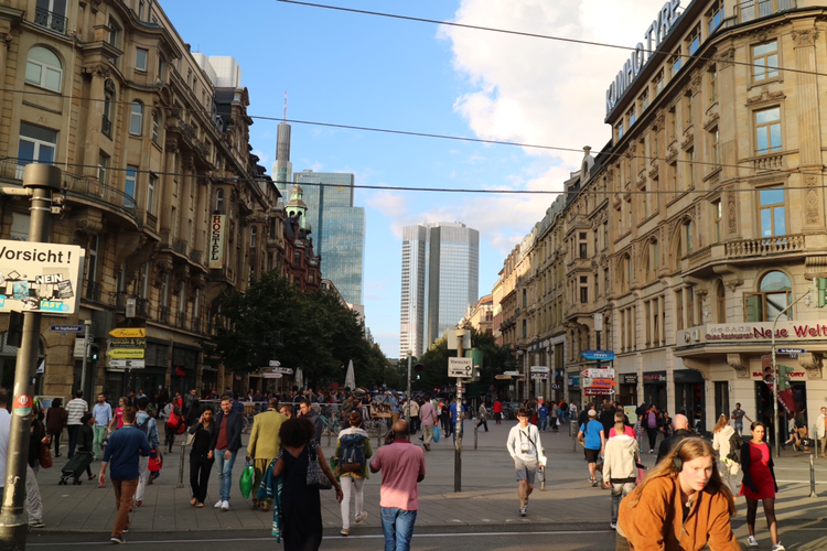 유럽에는 아름다운 거리가 많다. 걷다가 그냥 지나치기 아까울 정도의 멋진 거리가 곳곳에 많다. 잠시 멈춰 카메라 셔터를 누르고 있다. 독일 여행의 첫 도시인 프랑크푸르트에 도착해서 처음 마주한 거리는 카이저 거리이다. 중앙역에서 내리면 곧장 보이는 거리이다. 레스토랑과 카페가 이어져 있다. 유로 2016 대회 기간 중이라 대부분의 상점 앞에는 대형 TV가 놓여 있다.