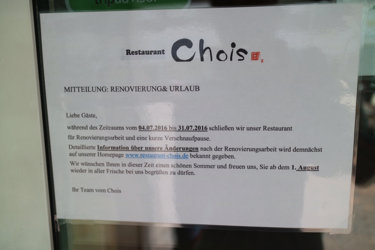 아, 목적지 하나는 있었다. 어제부터 탄수화물을 하나도 못 먹은 탓에 나의 몸은 밥알을 찾고 있었다. 실제로 그런지는 모르겠지만 내 머릿속은 밥알 투성이었다. 나는 책에서 본 하노버 유일의 한인식당을 머릿속 내비게이션 목적지로 설정했다. 그리고 그냥 걷기를 즐기며 그곳을 찾아갔다. 가는 길이 시원하다. 적당히 부는 바람과 함께 햇살도 좋았다. 걷다가 나오는 멋진 거리, 예쁘게 칠해져 있는 건물 사진을 찍는다. 그리 어렵지 않게 목적지를 찾았다. 사실 '벌써부터 현지식이 아닌 한인식당을 찾다니'라며 한편의 나는 나를 꾸짖고 있었지만 나는 합리화했다. 생각해보니 독일에 도착해서 탄수화물을 한 번도 섭취하지 않았다고 말이다. 자기합리화를 끝낸 나는 이미 한인식당 ‘Choi’ 앞에 서있다. 그런데 이게 웬일인가. 문이 닫혀있다. 가까이 가서 보니 내부 공사 중이란다. 그렇게 독일에서의 첫 한인식당 방문은 좌절됐다.