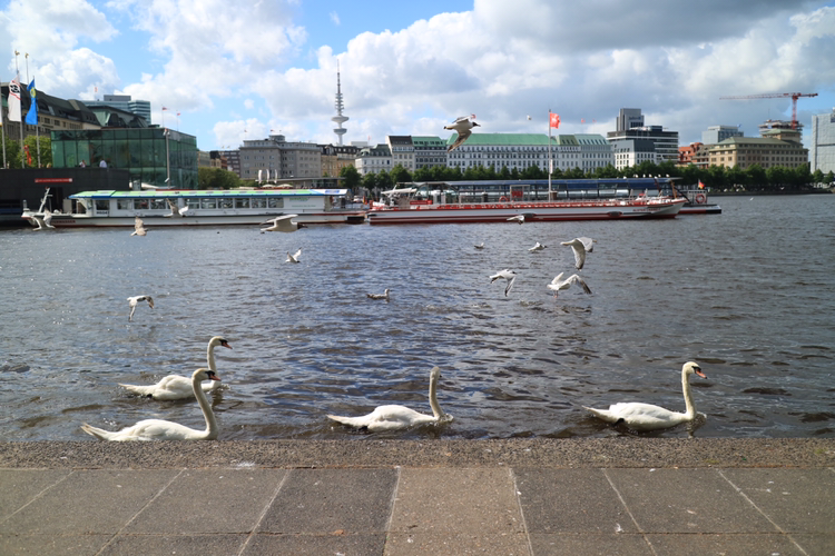 유럽에서 혼자 맞이하는 생일이 특별할 것이라고 지인들이 축하해준다. 사실 특별할 건 없었는데 오히려 지인들이 이렇게 더 축하해주는 것이 특별하다. 함부르크로 와서 기분 좋게 내 생일을 맞이한다. 숙소에 짐을 풀고 밖으로 나갔다. 면적 1.8 제곱 킬로미터에 달하는 알스터 호수를 찾았다. 1235년에 엘베 강 지류인 알스터 강에 댐을 만드는 과정에서 측정을 잘못하는 바람에 물이 너무 많이 고여 호수가 되었다고 한다. 재미있는 곳이다. 호숫가에는 산책을 나온 사람들이 많다. 호수에는 백조와 오리가 무리를 지어 헤엄을 치고 있다. 시원한 바람과 따뜻한 햇살이 비치는 호숫가의 풍경이 아름답다.