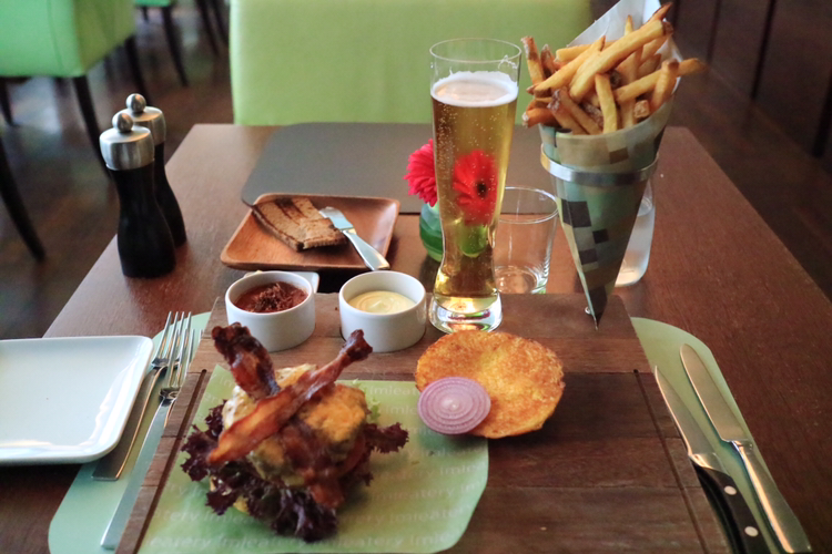 함께 나온 BBQ 소스와 SOUR 소스를 곁들여서 먹으니 더 부드럽다. 나는 아주 천천히 함박스테이크를 느껴며 먹었다. 함께 나온 감자튀김도 너무 딱딱하지 않은 부드러움을 선물해준다. 내 몸에 에너지로 보충을 해줄 것 같은 노란색 맥주도 함께 목으로 넘긴다. 아주 만족스러운 점심식사다. 매너 좋은 웨이터는 일을 보며 내게 두 번이나 괜찮냐고 물어본다. 나는 Good을 연발하며 엄지를 치켜올린다. 함부르크에서 맛본 함박스테이크여서 그런지 더 만족스럽게 느껴진다. 가장 중요한 스테이크가 보통 맛보는, 즉 어떨 때는 징걸징걸 씹히는 그런 맛이 아니었다. 고기의 맛과 질감이 느껴지면서도 적절한 간이 되어 다른 재료들과 조화를 이루었다. 그냥 고기를 갈아 무너지는 느낌이 아니다. 소고기의 육질이 느껴진다. 육즙과 함께 은은한 향도 퍼진다. 아마 패티에도 정말 다양한 재료가 들어가 있을 것이다. 이미 한 곡의 교향곡을 마친 패티가 다른 악기들과 함께 더 큰 오케스트라 협주를 하는 듯했다. 조화로운 부드러움이었다. 중간에 사진도 찍어가며 천천히 먹었는데도 유지되는 온기도 풍부한 맛에 한 몫했다.