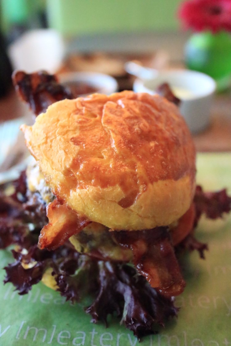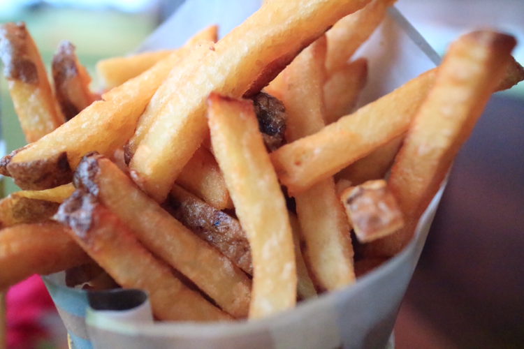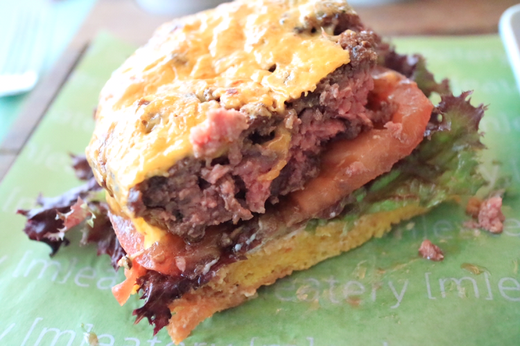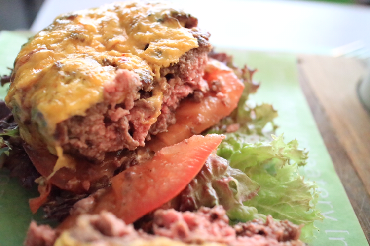 이제 본격적으로 스테이크를 썰어볼 차례다. 한쪽 면을 세로로 자른다. 두꺼운 패티는 그 우람한 두께를 뽐내며 소고기 살점과 함께 육즙을 뿜어냈다. 부드러운 육즙을 흘려보낸다. 빵과 함박스테이크와 곁들여진 채소를 함께 맛본다. 부드럽고 육즙의 향이 느껴진다. 입안에서 소고기의 질감과 신선한 채소가 잘 어우러진다.