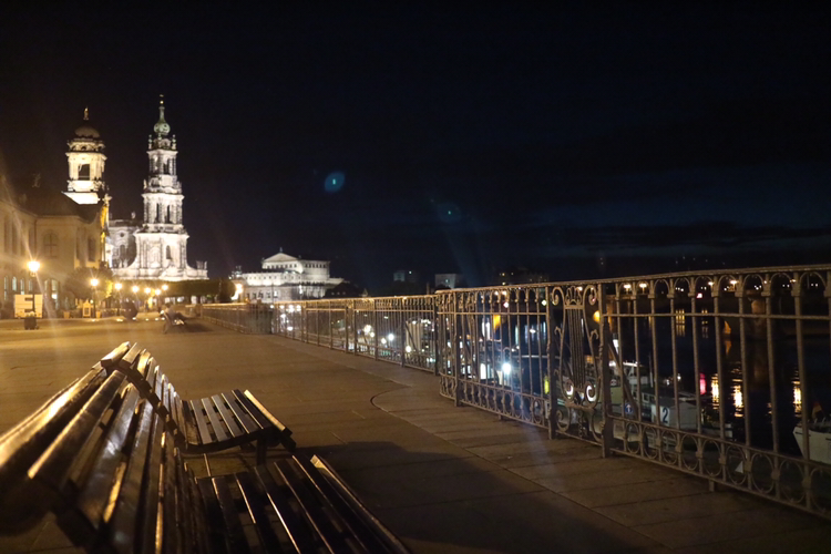 밤이 찾아왔다. 나는 숙소로 돌아가는 길에 야경을 감상하며 드레스덴을 산책했다. 아무런 정보 없이 그냥 걸었다. 시원한 바람이 함께 따라오며 산뜻한 기분이 든다. 야경을 친구 삼아 편안하게 앉으라고 소리치는 벤치가 포근해보인다. 벤치 옆의 가로등의 불빛은 온화하다.