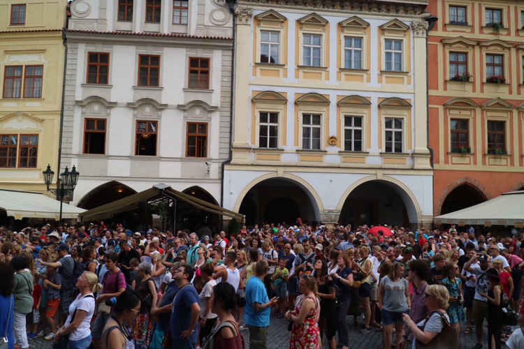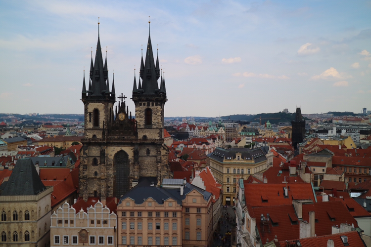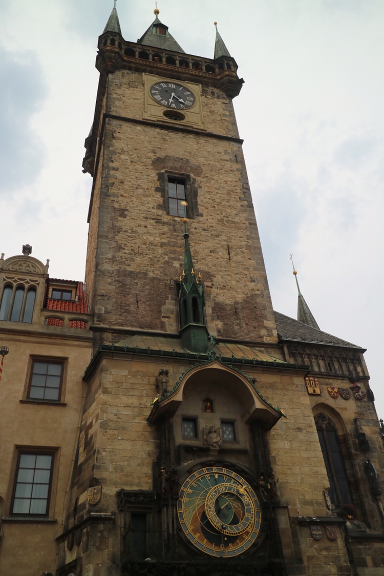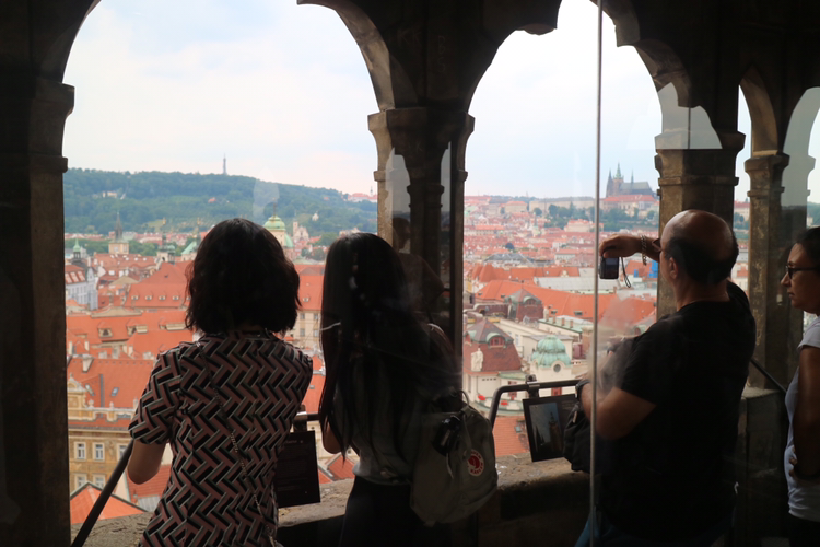 다시 구시청사 건물로 향한다. 구시청사 건물은 프라하를 상징하는 건축물이자 구시가 광장의 명물이다. 이 건물에 천문시계가 달려있는데 관광객들이 매 시간마다 펼쳐지는 광경을 보기위해 몰려든다. 해골 모양의 인형이 종을 치며 시작되는 퍼포먼스인데 마침 정각이 가까워져 잠깐 관람하고 높은 곳으로 발걸음을 옮겼다.
