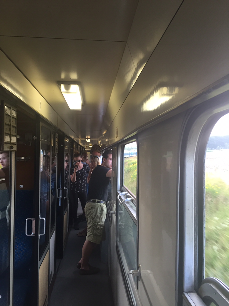 기차 안의 풍경은 여행을 실감나게 한다. 미국인 단체 관광객들과 배낭여행객들로 붐빈다. 어떤 칸에서는 단체로 노래를 부르고 통로에는 배낭에 앉아가는 여행객들이 많다. 일찍 자리를 맡아서 앉아 있던 나는 주위를 바라본다. 창밖에는 넓은 들판이 따뜻한 햇볕에 일광욕을 하며 펼쳐진다. 시원한 바람과 함께 기차는 적당한 소음을 내며 힘차게 달린다. 기차가 연착되서 그런지 왠지 더 빠르게 달리는 것 같다.