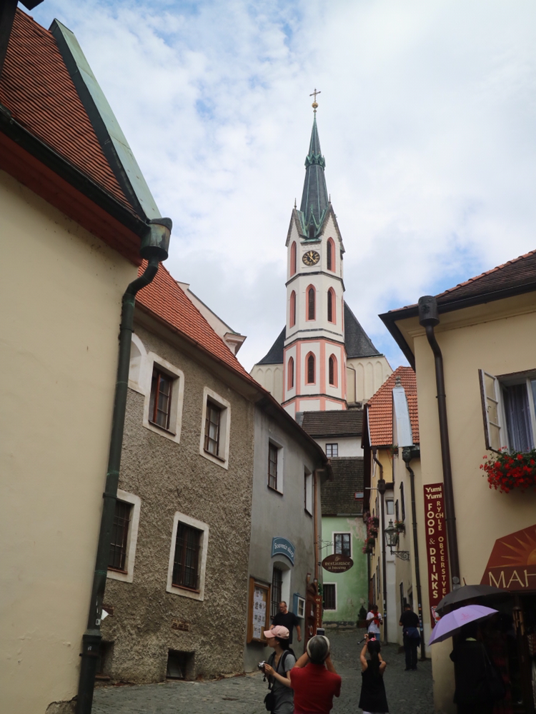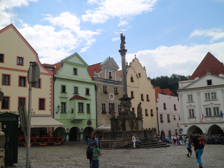 작은 상점들을 천천히 감상하며 마을을 둘러본다. 걷다보니 어느새 마을의 중앙광장이다. 중세시대의 건물들로 둘러싸여 있다. 파스텔 톤으로 칠해진 모습이 마치 동화 속에 온 듯하다. 작은 공원에서 전망 좋은 곳을 감상한다. 멋진 배경의 사진도 찍고 천천히 체스키를 감상했다.