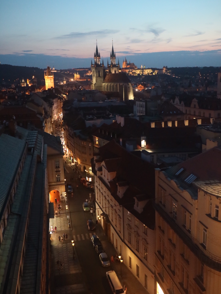 붉게 물들어가는 프라하의 일몰은 정말 아름다웠다. 붉은 태양이 빨간 지붕들을 더 곱게 물들이며 저물어 갔다. 멀리 보이는 프라하 성은 굳건하게 프라하를 지키는 듯 했고 앞에 보이는 틴 성당의 첨탑도 그 역할을 하겠다는 듯이 높이 솟아 있었다.