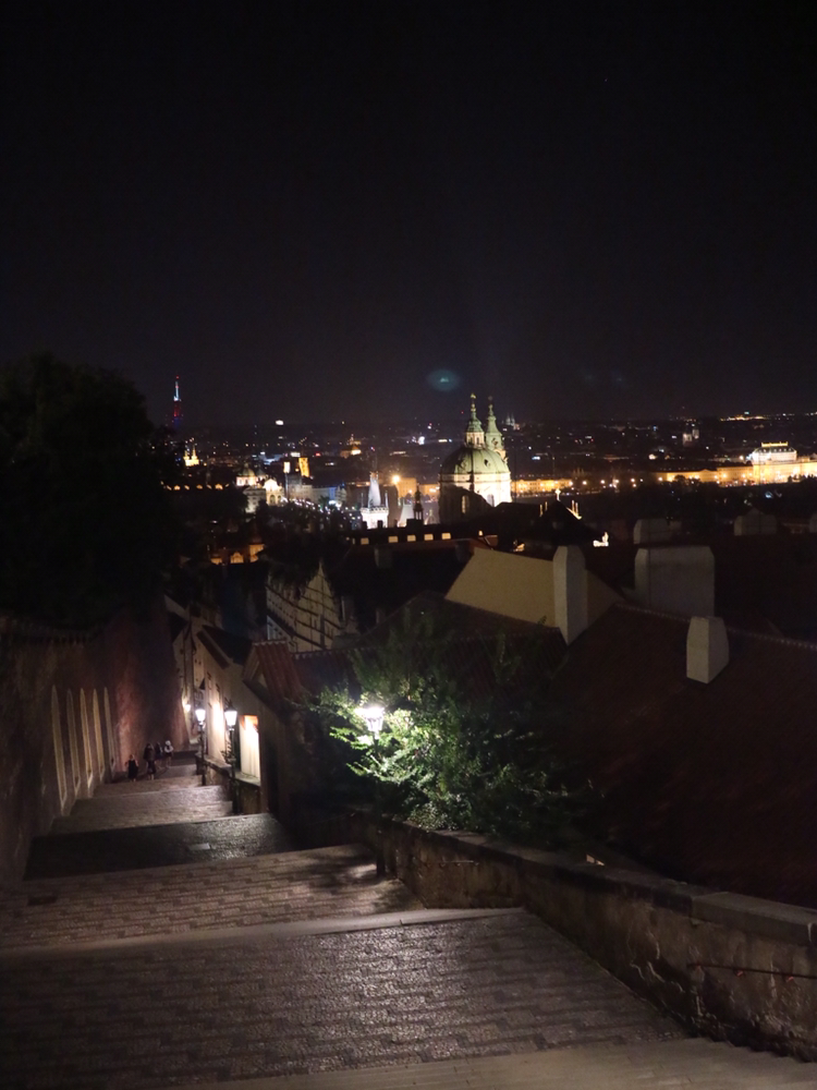프라하에서의 둘째 날에 다른 감상 포인트에 올라 야경을 봤었다. 그곳은 카를교 다음 다리를 건너 높은 공원같은 곳이었는데 젊은 친구들이 정말 많았다. 마치 야외 PUB과 같이 음악이 나오고 젊은 친구들은 높은 난간에 앉아 이야기를 나눴다. 친구들과 연인과 야경을 바라보는 모습이 제 각각 빛났다. 그곳에서 바라본 프라하의 야경도 굉장히 멋졌다. 올라가는 길은 힘들었지만 나도 난간에 걸터 앉아 프라하의 야경을 한참 동안 감상했었다.