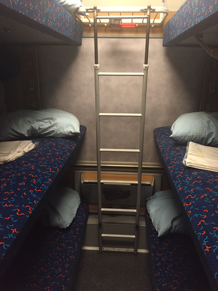 폴란드행 야간열차의 플랫폼 번호가 안내판에 뜨자 여행객들이 일제히 움직인다. 나도 그들을 따른다. 플랫폼에는 나를 폴란드로 실어다 줄 열차가 든든하게 서 있다. 승무원에게 호차 번호와 좌석을 확인받고 기차에 올랐다. 내부는 3층 침대 칸으로 되어 있는데 내 자리는 상석인 가운데 칸이다. 3층은 올라가기 쉽지 않고 1층은 바닥과 가까워서 상대적으로 덜 쾌적하다. 2층은 눕고 다시 빠져 나오기 쉽다. 그리고 건너편에 있는 1,2,3층 누구와도 쉽게 이야기를 나눌 수 있다. 내가 처음 타보는 침대 칸 야간 열차에 대해 잘 알고 있는 이유는 그 구조가 함정과 비슷하기 때문이다. 해군 군복무 시절 함정근무 당시 배 안 침실 구조가 이와 같았다. 오랜만에 그 구조을 보니 추억에 젖는다.