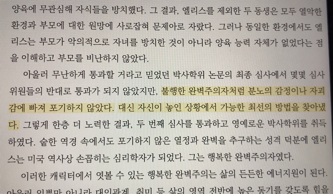 위의 내용으로 보자면 “양육 능력이 없는 부모를 이해하고 비난하지 않으며 불행한 완벽주의처럼 본의 감정이 아니라 자괴감에 빠져 포기하지 않았다. 대신 자신이 놓은 상황에서 가능한 최선의 방법을 찾아냈다.”라는 메시지를 나에게 전달한듯해 나름 한 시름 내려놓았다.