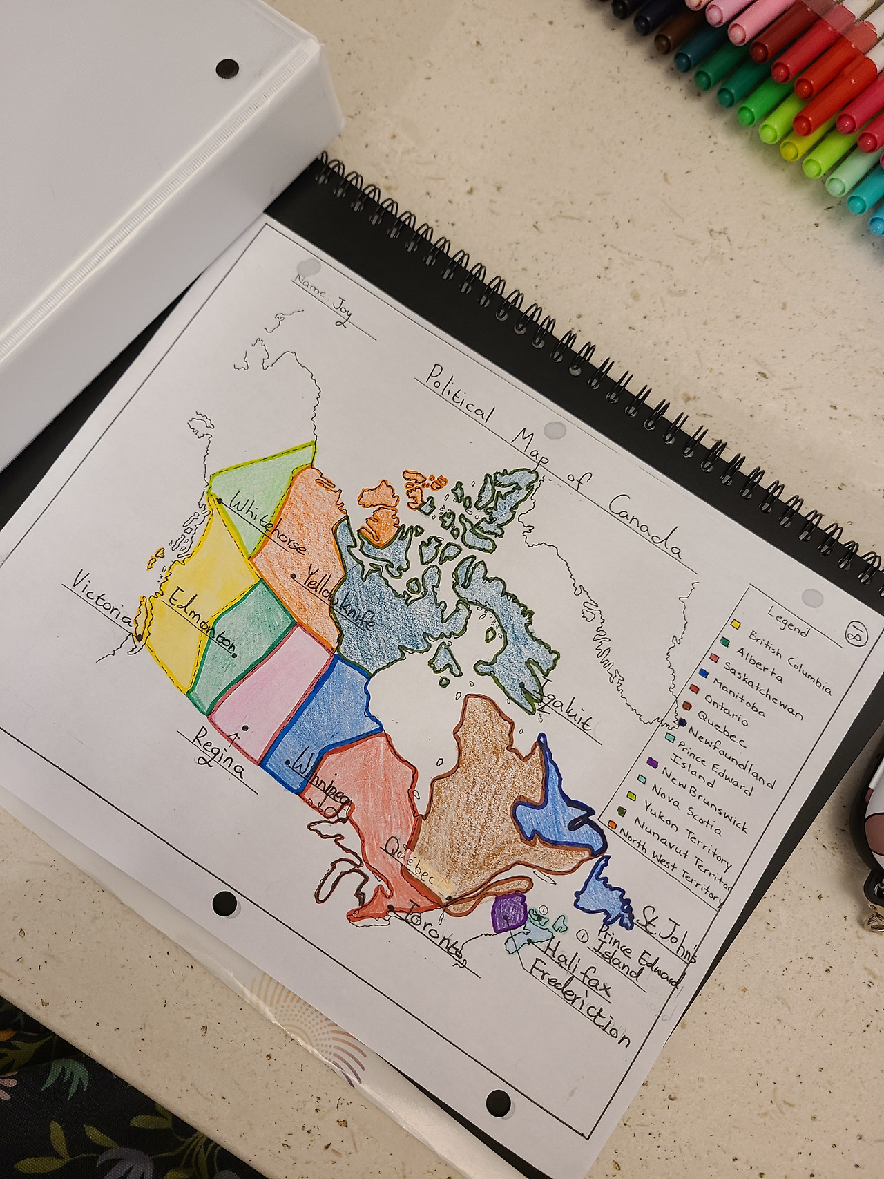 영어, 수학, 사회, 체육, 미술 등은 한국과 비슷하게 공부한다고 느꼈지만 아이들이 처음 배우는 것들도 있었다. 북아메리카 지리와 역사, 그리고 불어~! 한국 지리만 배우던 아이들이 이 큰 땅덩어리를 나눠가며 북아메리카 지형을 분석했고, 우리나라의 지나간 국가명과 위인들을 외우던 아이들은 유럽의 지배를 받던 캐나다의 역사와 세계사를 배우게 되었다. 사전지식이 전무한 상태. 책을 좋아하는 아이들이었다면 조금 쉬웠을까 싶긴 한데.. 다행히 캐나다는 역사가 매우 짧고 간단했고 지리도 색칠도 하고 영상도 보며 배우니 어렵지는 않아 했지만 이것도 영어가 문제.. 자꾸 새로운 단어들을 접하게 되니 외울게 많아졌다. 그리고 그중 가장 큰 문제는 불어였다. 캐나다는 제1언어가 영어와 불어 두 개 언어이다 보니 거의 모든 학교에서 불어를 배우게 된다.