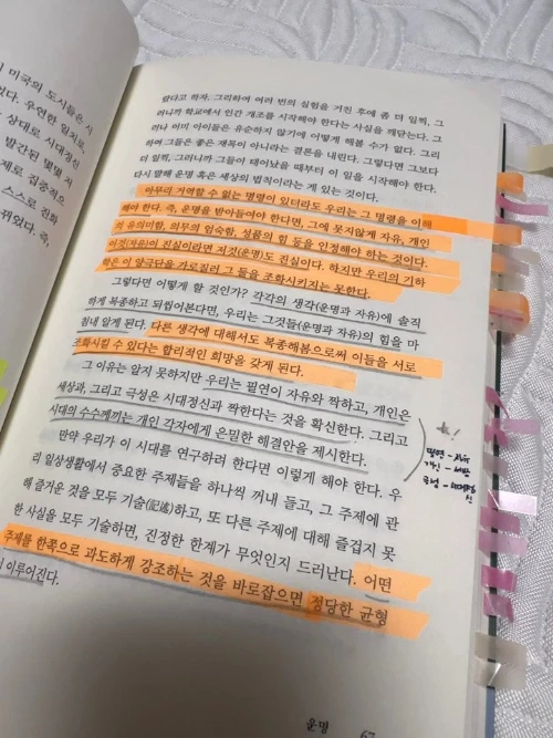 두번째 이유는 이 '자기에 대한 믿음' 이 자신에 대해서만 적용되고 타인에 대해서는 적용되지 않을 때에 오류 가능성에 빠질 수 있기 때문이다. '내 생각만 옳고 다른 사람의 말은 틀렸다' 라고 전제를 할 때, 우리는 독선적인 행동을 하게 되며, 자연스럽게 세상과 조화를 이루는 법을 잃어버린다. 내가 자유의지를 가질 수 있다면, 타인도 자유의지를 가질 수 있음을 항상 인정해야 한다. 내가 어떤 행위를 할 자유가 있다면, 타인도 그에 대한 어떤 행위를 할 수 있다는 자유가 있음 또한 항상 명심해야 한다. 결국 이 세상은 나 혼자서 살아가는 공간이 아니기 때문에, 내 생각대로, 내 의지대로 현실이 펼쳐지지 않는다고 하여 이 현실을 부정하는 것은 어리석다는 사실을 항상 기억해야 한다. 내 중심을 지키며 살되, 이 현실 속에서, 사람들과 조화롭게 살아가는 방법에 대해서는 좀 더 실용적인 접근이 필요하겠다. 물론 <운명>편이 이러한 이야기를 다루고 있긴 한데, 앞에서 얘기했다시피 운명은 읽기에 쉬운 텍스트는 아닌듯 하여 다른 책들을 같이 읽으면 좋을 것 같다. 일단 존 스튜어트 밀의 <자유론> , 한나 아렌트의 <인간의 조건>이 많이 떠올랐다. 하버마스의 의사소통 이론이나 후설의 상호주관성도 떠오른다. 어쨌든 여기에 대해서도 시간이 되면 한 번 기록해보고자 한다.