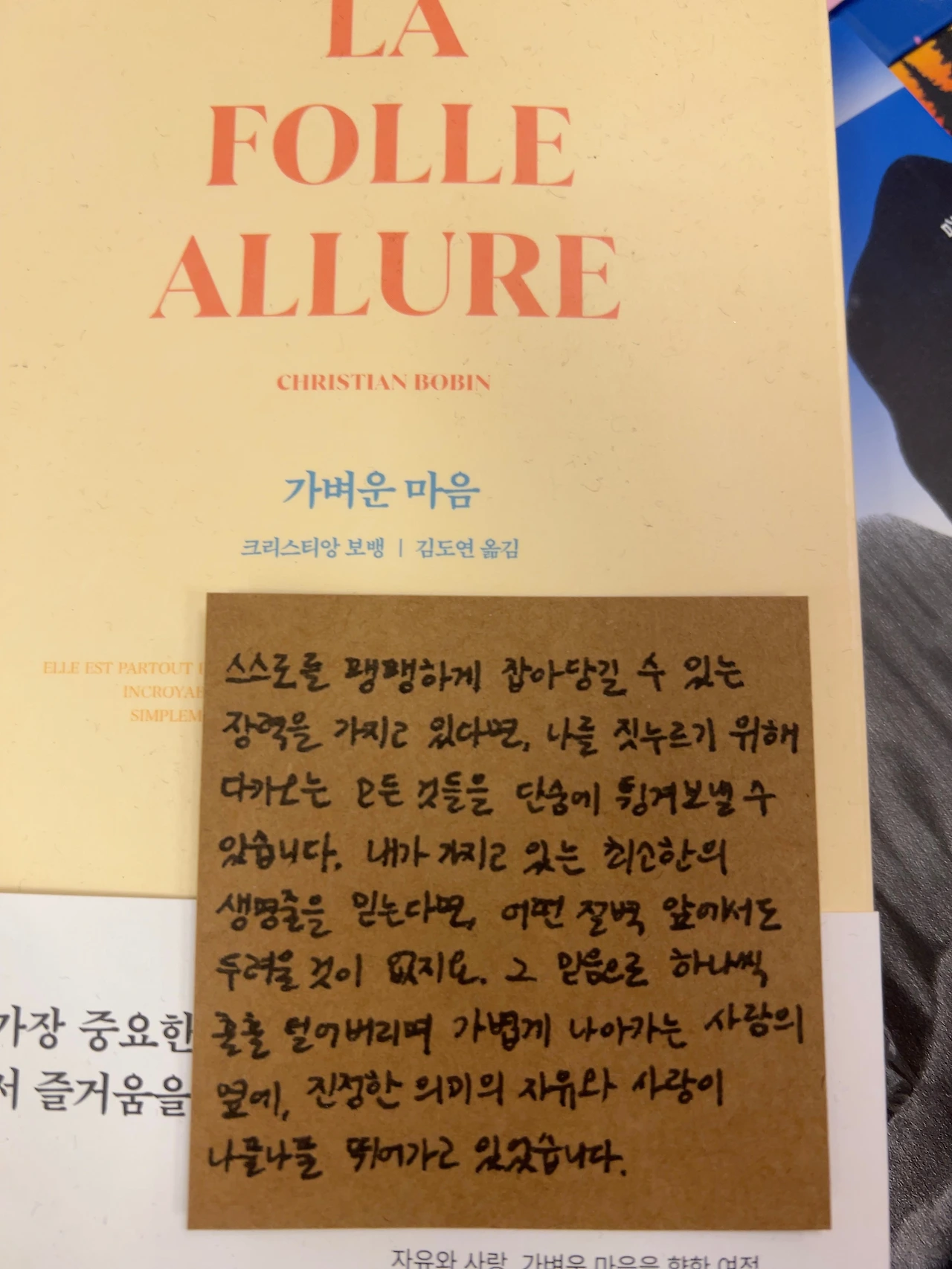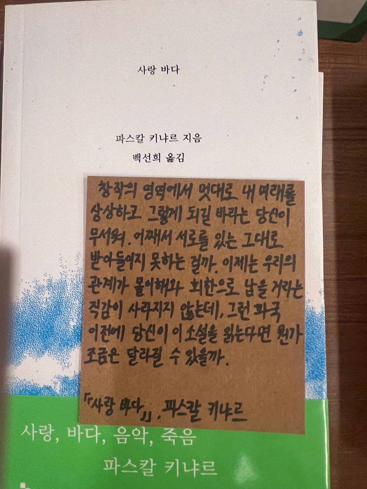 그 날 저녁에 집에 돌아와 나는 책장에서 그 책을 찾았다. <사랑의 기술>은 내가 20살 초반에 읽었던 책이었다. 거의 20년동안 쌓여져있던 먼지를 알콜스왑으로 닦고 책을 열어보니 빛바랜 종이 위에 꽤 열심히 읽은 흔적이 있었다. 밑줄 그은 본문 몇 장을 찍어 동료 D에게 보냈고, 그는 책을 빌려달라했다. 다음날 D의 책상 위에 그 책을 두었고, 조금 이따 그는 밑줄이 좋다고 메시지를 보내왔다. 같은 카톡방에 있던 J는 밑줄만 보면 되서 좋다고 말했다. 그녀는 글을 읽는 것을 그리 즐기지는 않지만 내가 가끔 보내주는 글귀들은 좋아했다. D와 나는 서로가 좋아하는 책들에 대한 이야기를 잠시 나눴고, 나는 그가 추천해준 책 몇 권을 장바구니에 넣었다. J는 자기도 이번주말에는 책을 읽겠다며 책을 추천해달라고 했고, 그녀는 내가 추천해준 책을 곧바로 주문했다. 그렇게 우리는 일주일 동안 가장 정신없는 수요일 오후에, 잠시 다른 가능성의 문을 열어두고 그 공간에 스스로를 두어보았다.