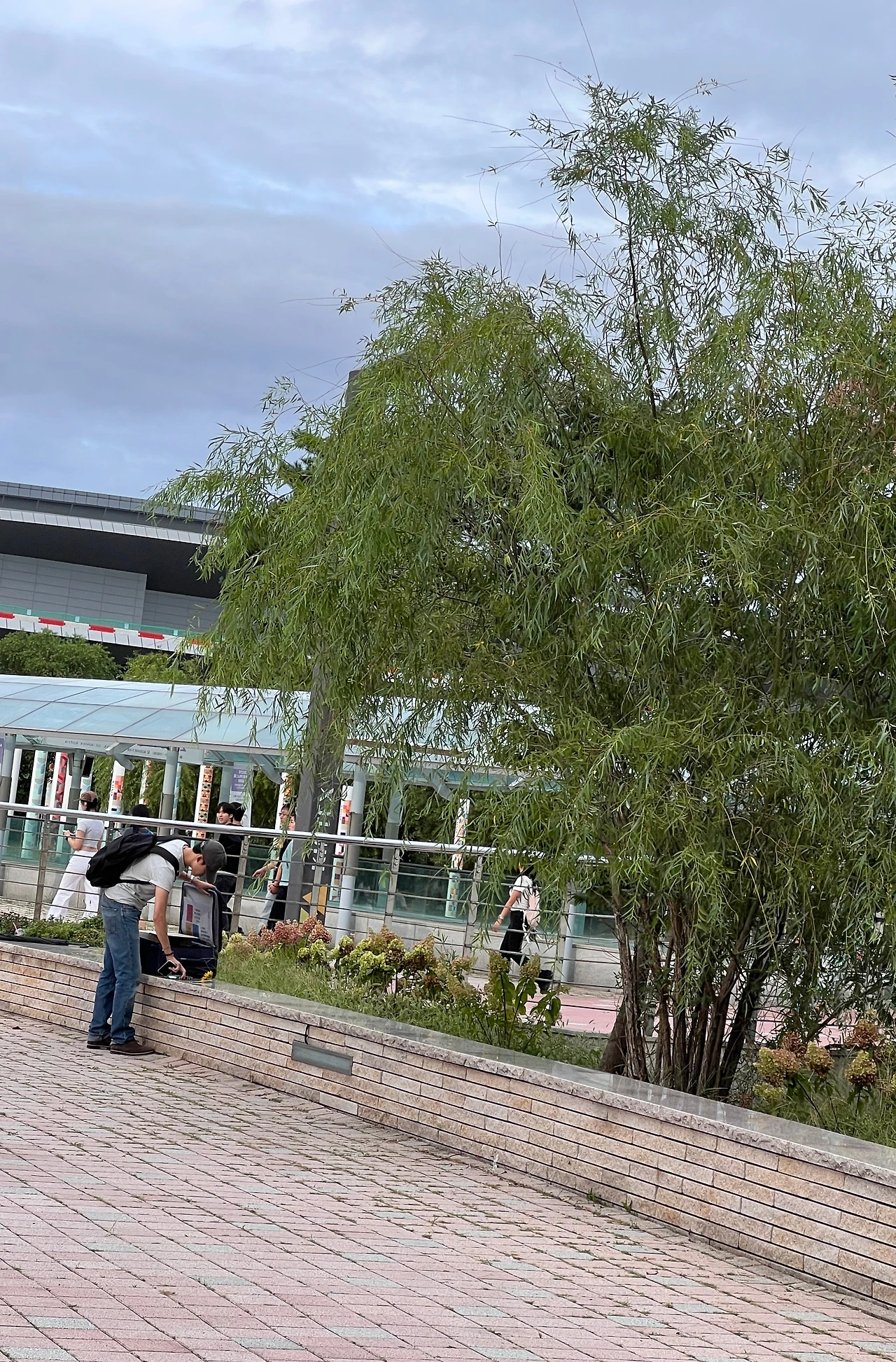 티켓부스에서 표를 교환하고, VIP 머천다이즈를 받은 후, 나는 다시 킨텍스 바깥으로 나왔다. 스탠딩공연이었기에 물품보관소를 이용하기 위해 줄을 길게 서있는 사람들이 가득했고, <CHROMAKOPIA> 포토존에서 사진을 찍는 사람들도 있었다. 내한공연 전문 서비스에서, 설문 스티커를 붙이면 직접 만든 타일러 가내수공업 스티커를 준다길래 스티커를 붙이고 타일러 스티커 두장도 받았다. 아직 공연 시작까지는 시간이 있었고, 날씨가 좋아 나무 밑에 있는 화단 밴치에서 잠시 쉬면서 VIP머천다이저에 있는 굿즈들이 뭐가 있는지 주섬주섬 열어서 보고 있었다. 한참 보고 있는데 옆에서 누군가 말을 걸어왔다.