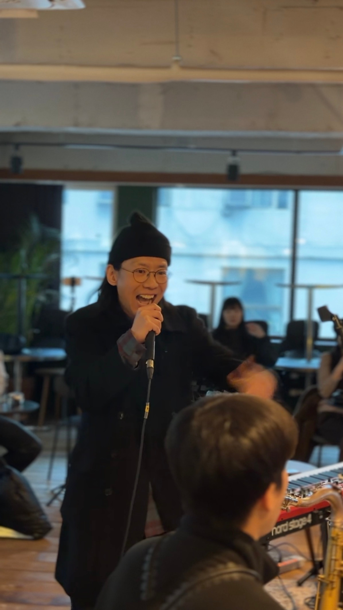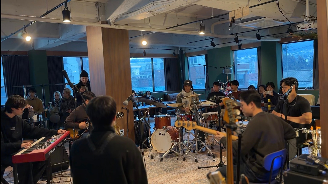 건반, 드럼, 베이스, 기타, 퍼커션, 색소폰 소리가 서로 주거나 받거니 하다가 어느새 합을 이룬다. 그러다 다시 한 사운드가 튀어나오고 그 사운드에 반응하듯 연주가 이어진다. 이런 연주가 약 20여분간 진행되다 호스트가 잠깐 브레이크타임을 선언한다. 그 때, 내 앞에서 색소폰 연주를 하던 연주자와 베이스 연주자가 서로 인사를 나눈다.