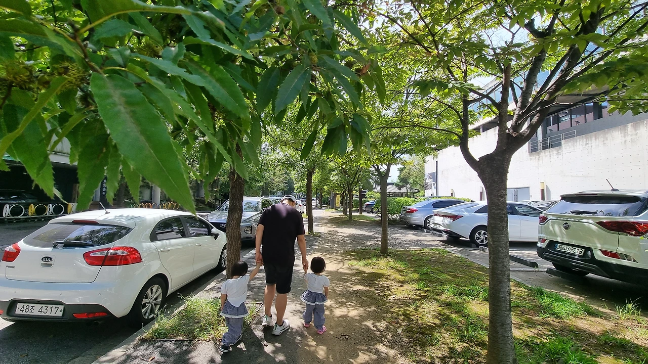 1호를 유모차 태워 뒤따라갔다.