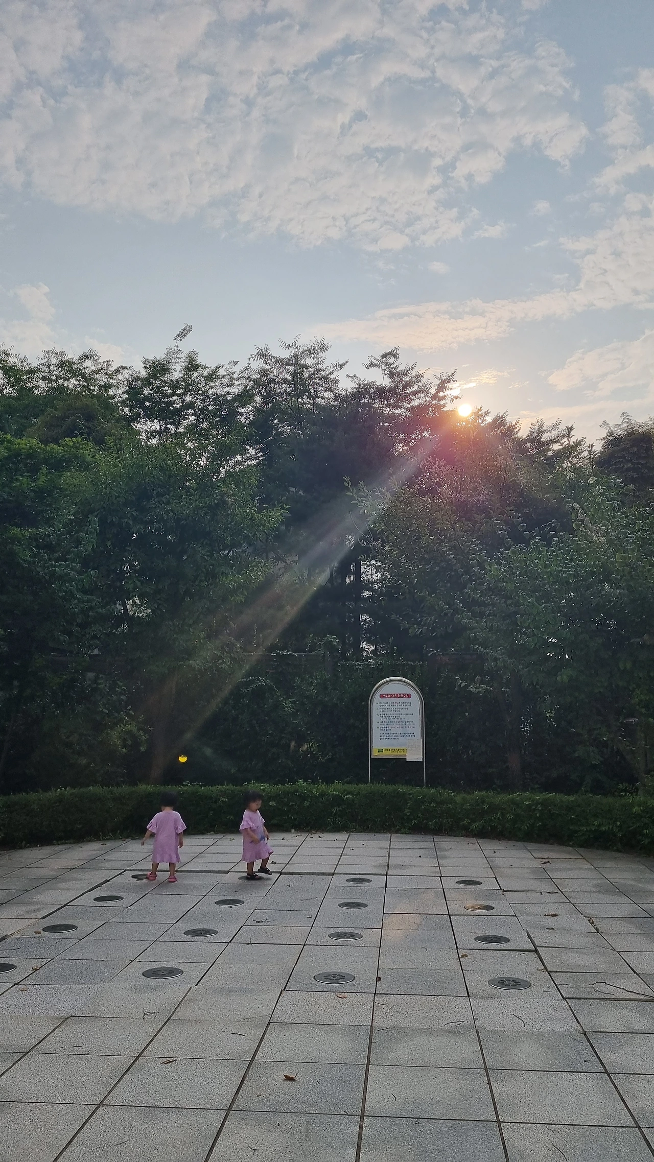 해가 비치는 모습과 아이들이 함께 어우러져
