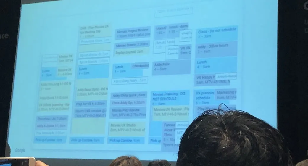 잠깐 자신의 Weekly Schedule을 보여줬는데, 하루에 7시간 정도를 회의에 참석한다고 한다. 비주얼 작업에 투자하는 시간보다는 사람들과 함께 미팅을 하며 프로덕트를 만들어간다는 것을 증명하는 부분이었다.