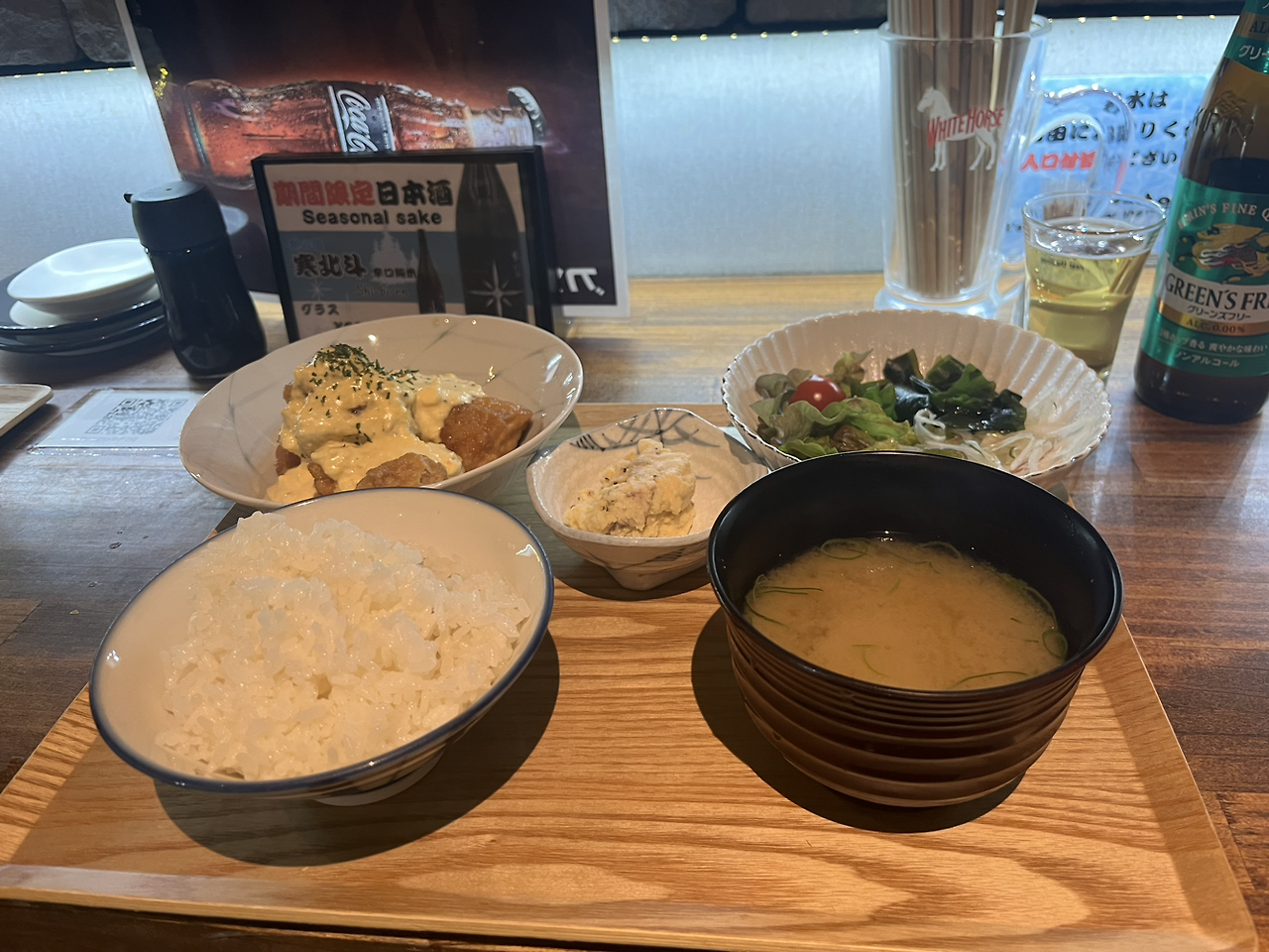 저녁에 다시 나와서 언니랑 에프콘셉트라는 카이센동이 알려진 숨겨진(?) 맛집에 갔다. 첫날부터 속이 안 좋아질까 걱정되어 해산물은 피해 치킨 남만 정식을 먹었다. 마요네즈 베이스의 깔끔하고 조화로운 맛에 눈이 번쩍 뜨였다. 이게 일식이구나! 기린 논알코올 맥주와 함께 먹으니 더 맛있었다.