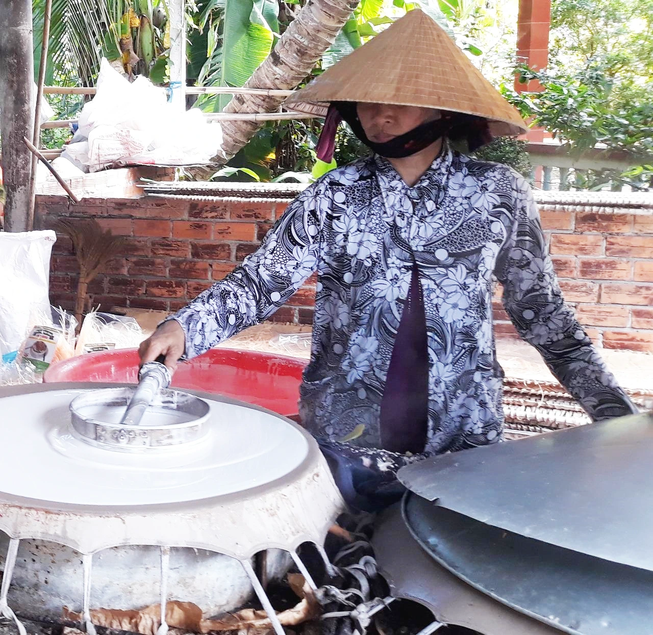 쌀국수 공장은 껀터 메콩 강가에 있다. 수상시장(Floating market)에서 배로 10여분 거리에 있다. 대문 위에는 방문을 환영한다는 베트남어와 영어 글귀와 함께 “lò hủ tiếu-vườn sinh thái”라고 쓴 간판이 걸려 있다. 베트남어를 직역하면 “화로(火爐)국수와 생태정원”이다. 밖에서 보면 식당이나 개인 집 같다.