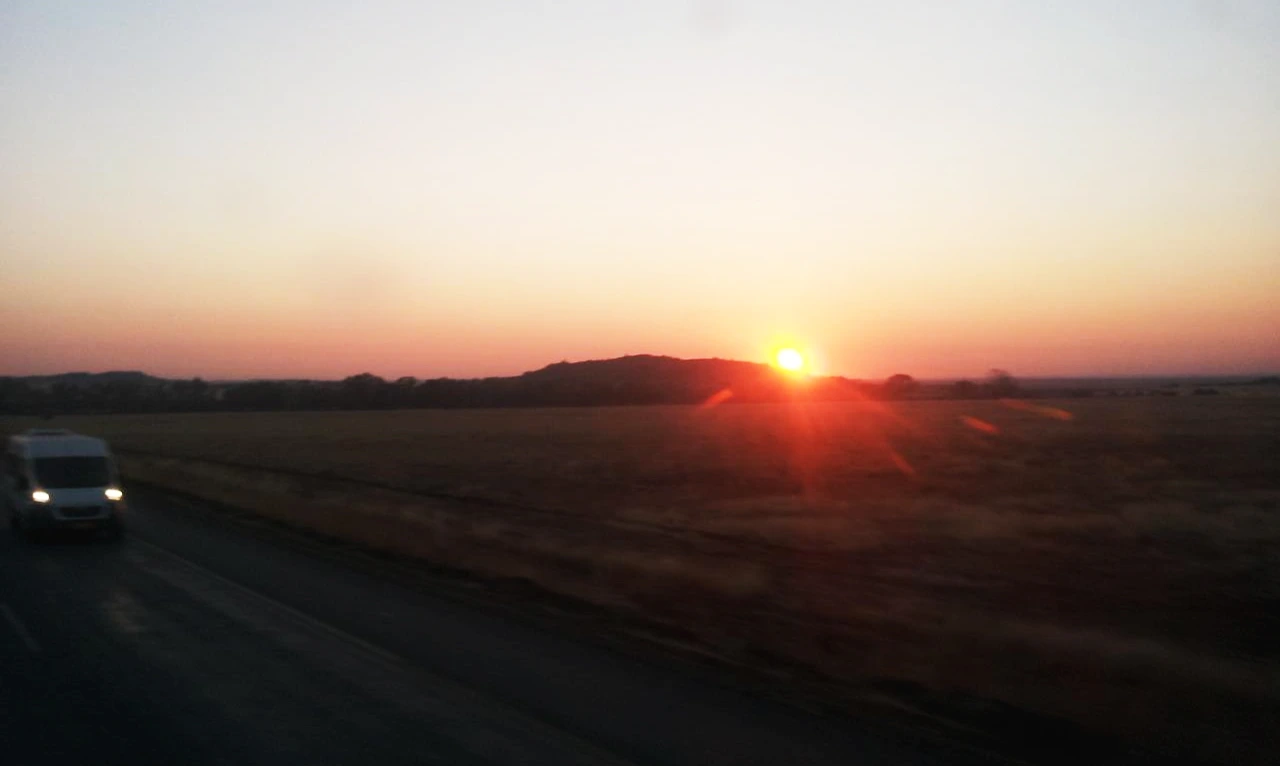 I traveled by bus from Cape Town to Johannesburg in South Africa. It took about 20hours while the distance between both cities is around1,1398km. This was the longest journey by bus after my birth. Sleeping on the bus, I enjoyed sunrising from the huge field in the morning on the bus.