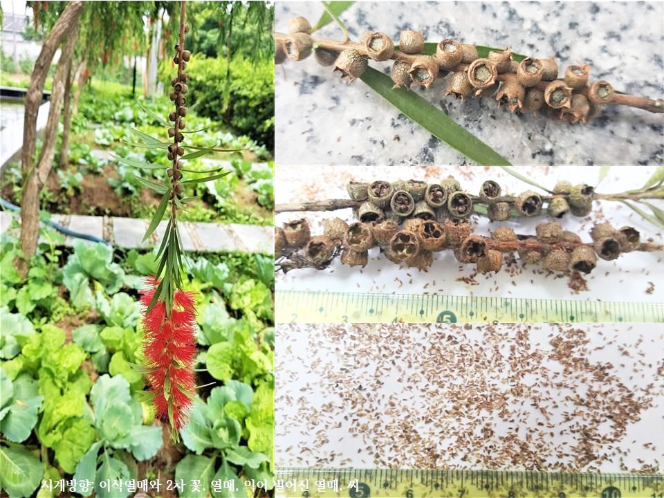 3. 병솔나무 또는 수양병솔나무란 이름은 꽃이 달린 모습이 병을 씻는 솔을 닮고 가지가 실버들처럼 길게 늘어져 있어 영어로 weeping bottlebrush라 했고 이것을 우리말로 옮긴 것으로 보인다.