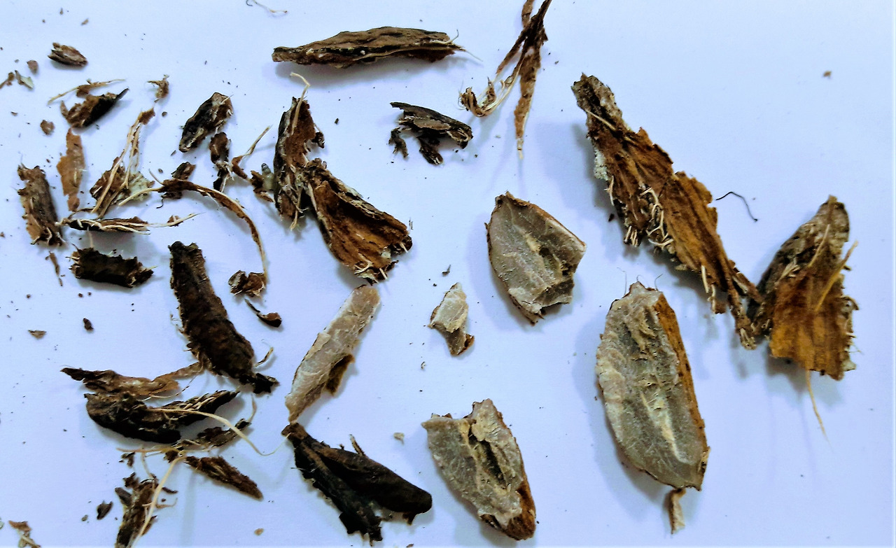 꽃받침은 아래는 붙어 하나의 통을 이루고 위 끝이 4개로 갈라진 종(통) 모양이다. 크기는 길이2~3mm, 1조각 너비1~2mm다.