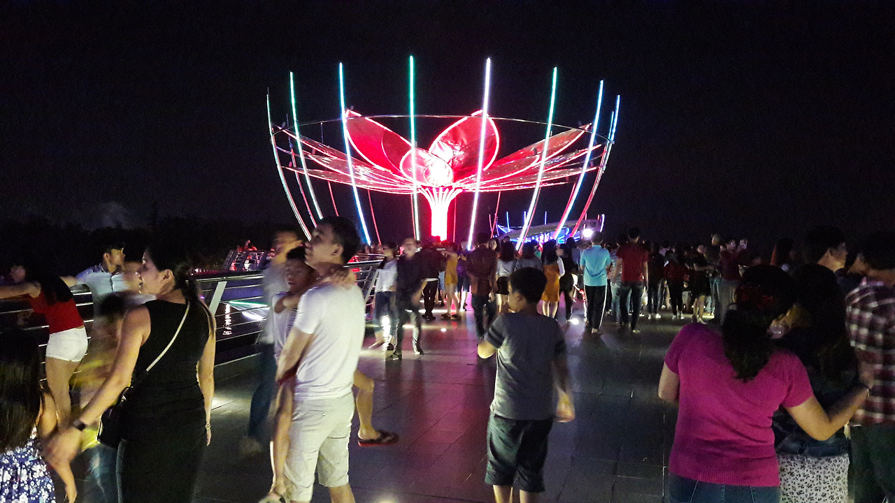 가로등과 건물의 조명에 익숙하다 도로 위아래에 설치한 조명을 보니 새롭고, 그것들이 거리를 달리는 자동차와 오토바이 불빛과 얽히다 풀리고 풀리다 얽히니 색달라 보였다. 여러 종류의 불빛과 색깔, 모양이 섞이고 어울려 껀터시 거리조명은 더 매혹적이고 환상적이었다.