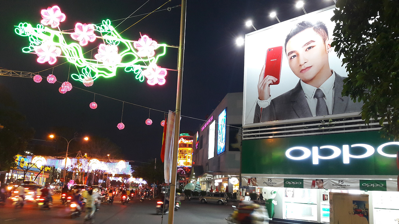 이들 조명은 거리를 달리는 자동차와 오토바이의 헤드라이트와 어울려 더러는 춤을 추듯, 조금은 숨바꼭질 하듯 하면서 껀터시 밤을 낭만의 도시로 만들었다. 지나치지 않으니 시각적으로 질리지도 않았다.