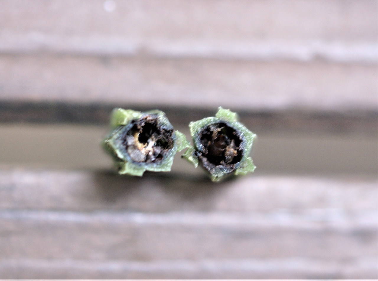 ●열매 면(面) 중앙의 낮은 3개 능각: 이 능각은 열매가 익어도 벌어지지 않는다. 열매껍질의 맥으로 껍질과 한 몸(살)이기 때문이다. 따라서 열매가 6각기둥이지만 익으면 3조각으로 벌어진다.