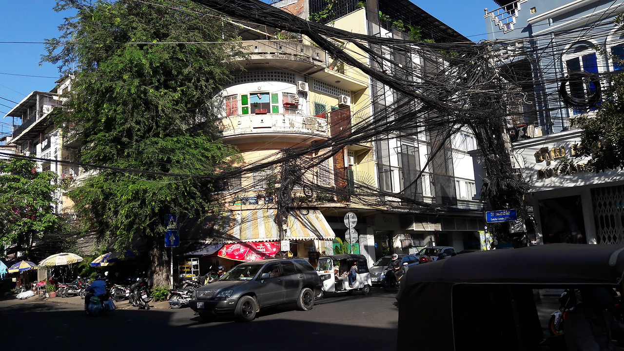 이웃나라 캄보디아 수도 프놈펜도 사정은 마찬가지다. 껀터 보다 더했으면 더했지 덜하지 않았다. 공중에 전깃줄 그물을 쳐 놓은 것 같았다. 전신주는 전깃줄 나무 같았다. 그 옆을 지나가면 감전될 것 같은 두려움도 있었다.