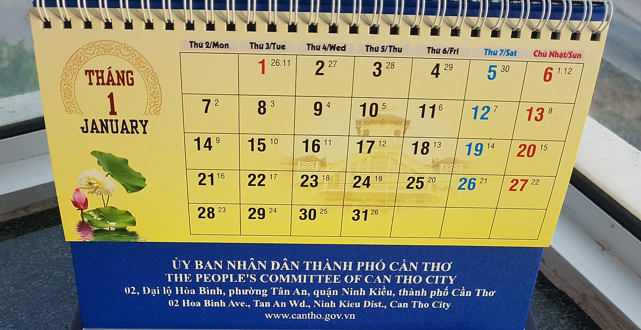 1. 베트남의 요일은 일요일 만 빼고 요일 앞에 2, 3, 4, 5, 6, 7을 붙인다. 일요일은 chữ nhật(쭈녓, 주일을 뜻한다는 말도 있다.), 월요일은 Thứ Hai(또는 Thứ 2, 2번째 요일), 화요일은 Thứ Ba(또는 Thứ 3, 3번째 요일), 수요일은 Thứ Tư(또는 Thứ 4, 4번째 요일, 베트남에서 4는 Bốn인데 1의 자리에 4가 오면 Tư라고 해야 한다고 해서 Bốn이라 하지 않고 Tư라 한다고 함), 목요일은 Thứ Năm(또는 Thứ 5, 5번째 요일), Thứ Sáu(또는 Thứ 6, 6번째 요일), Thứ Bảy(또는 Thứ 7, 7번째 요일)이다.