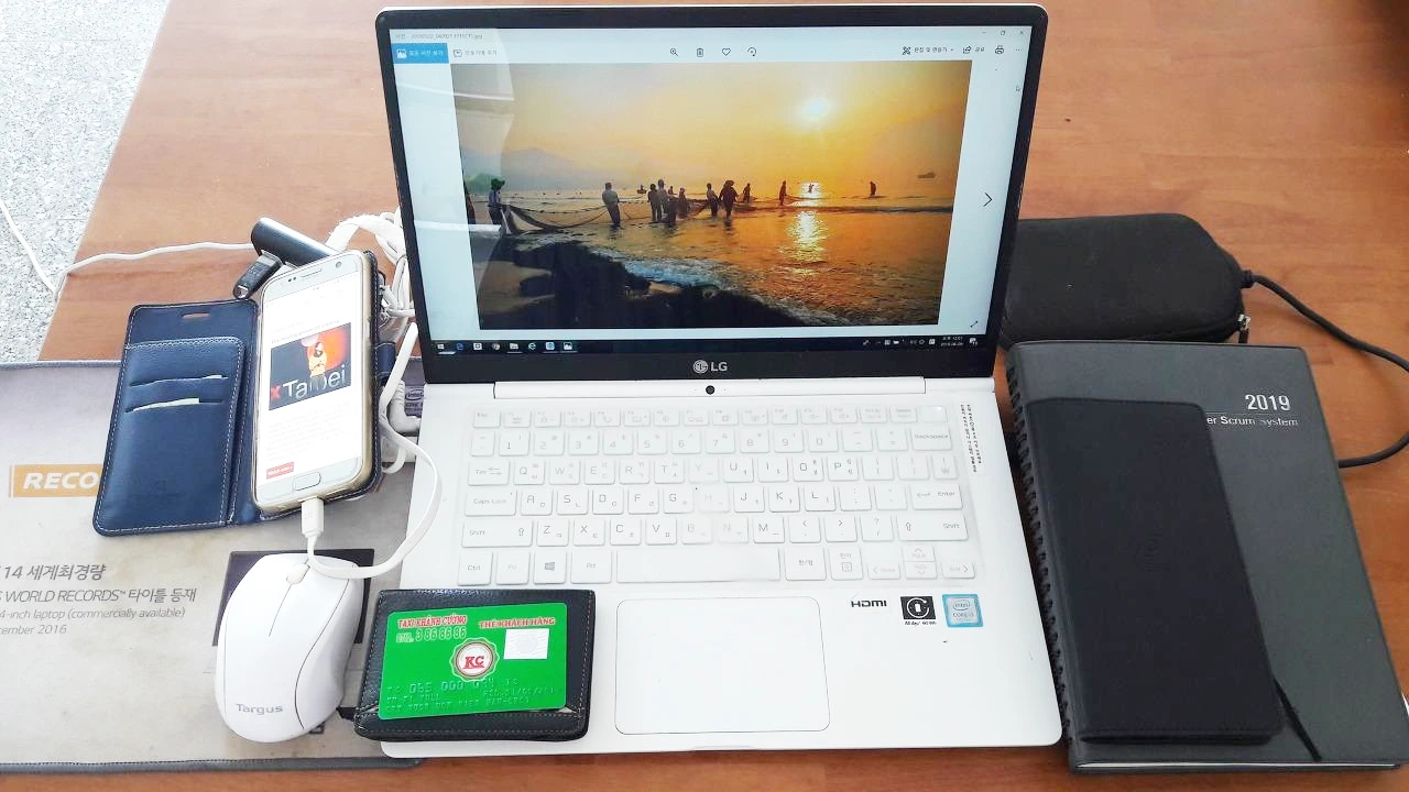 노트북은 출근 때 가방에 넣어 다닌다. LG모델 14Z970-GR3HK로 2017년 베트남에 오면서 새로 산 것이다. 가볍고 작아 휴대하기 좋고 성능이 우수하다. 주로 문서 작성과 편집, 메일 교환, 사진 편집, 자료검색 등을 한다. 기능을 다 활용하지 못하는 것 같아 꾸준히 새로운 기능을 배워 활용범위를 늘리고 있다.