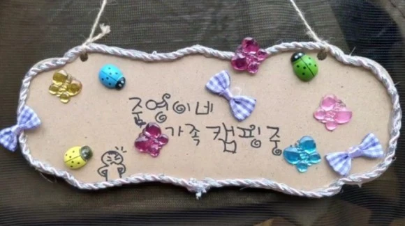 <학부모 모임 CLP가 만들어 준 캠핑표찰, 0연 씨와 0남 씨는 참 마음이 따뜻하고 재주도 많다>