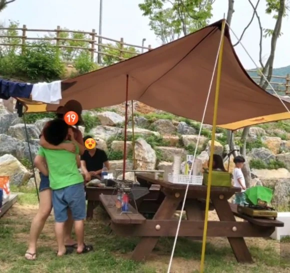 <작년 캠핑 갔을 때의 모습, 얼굴 노출 안된다길래 19금으로 발라 줬다>