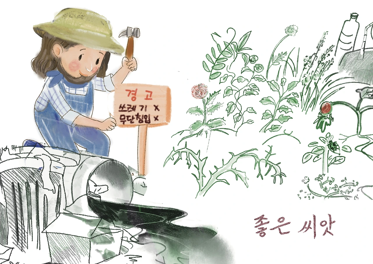 부드러웠던 줄기에는 날칼로운 돌기가 생겨났고 뿌리 끝은 독수리 발톱처럼 땅속을 깊이 파고들었어요. 억센 여름 햇살의 기운을 먹고 자란 잡초들은 갈수록 더 억세고 강해졌어요.