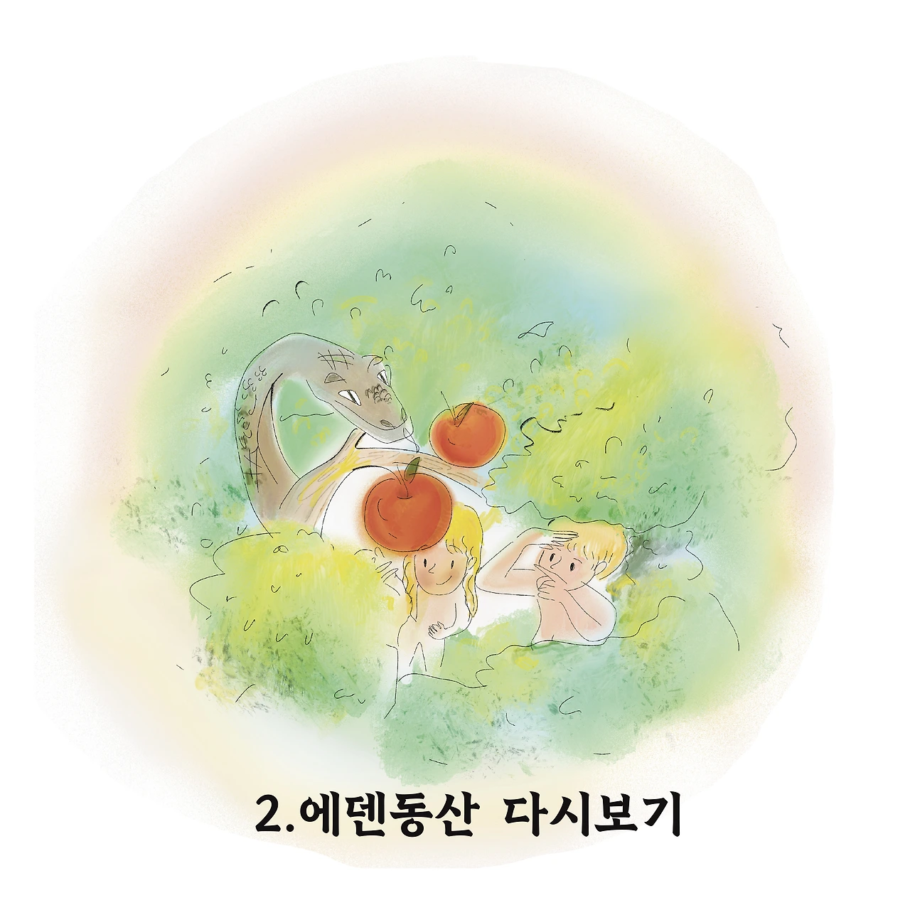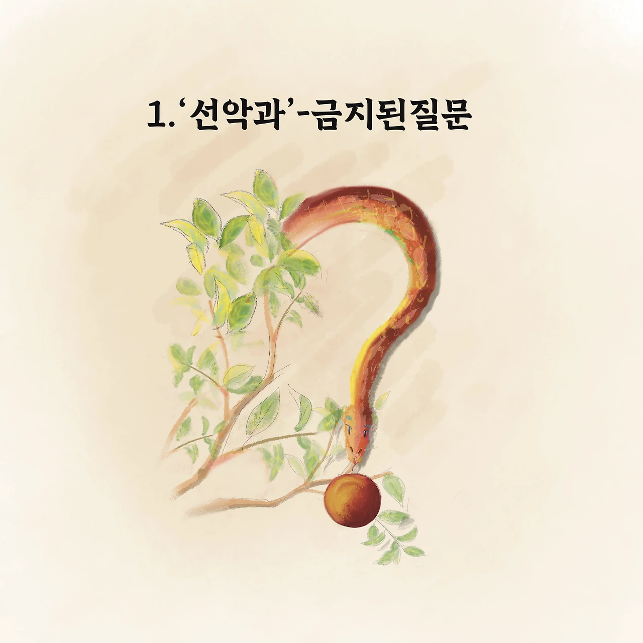 그렇게 관계가 깊어지던 어느 날, 뱀은 혼자 있던 하와에게 선악과 이야기를 꺼냈다.