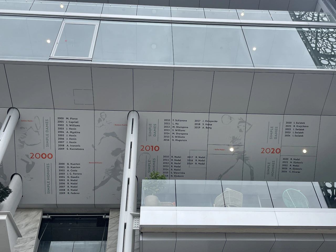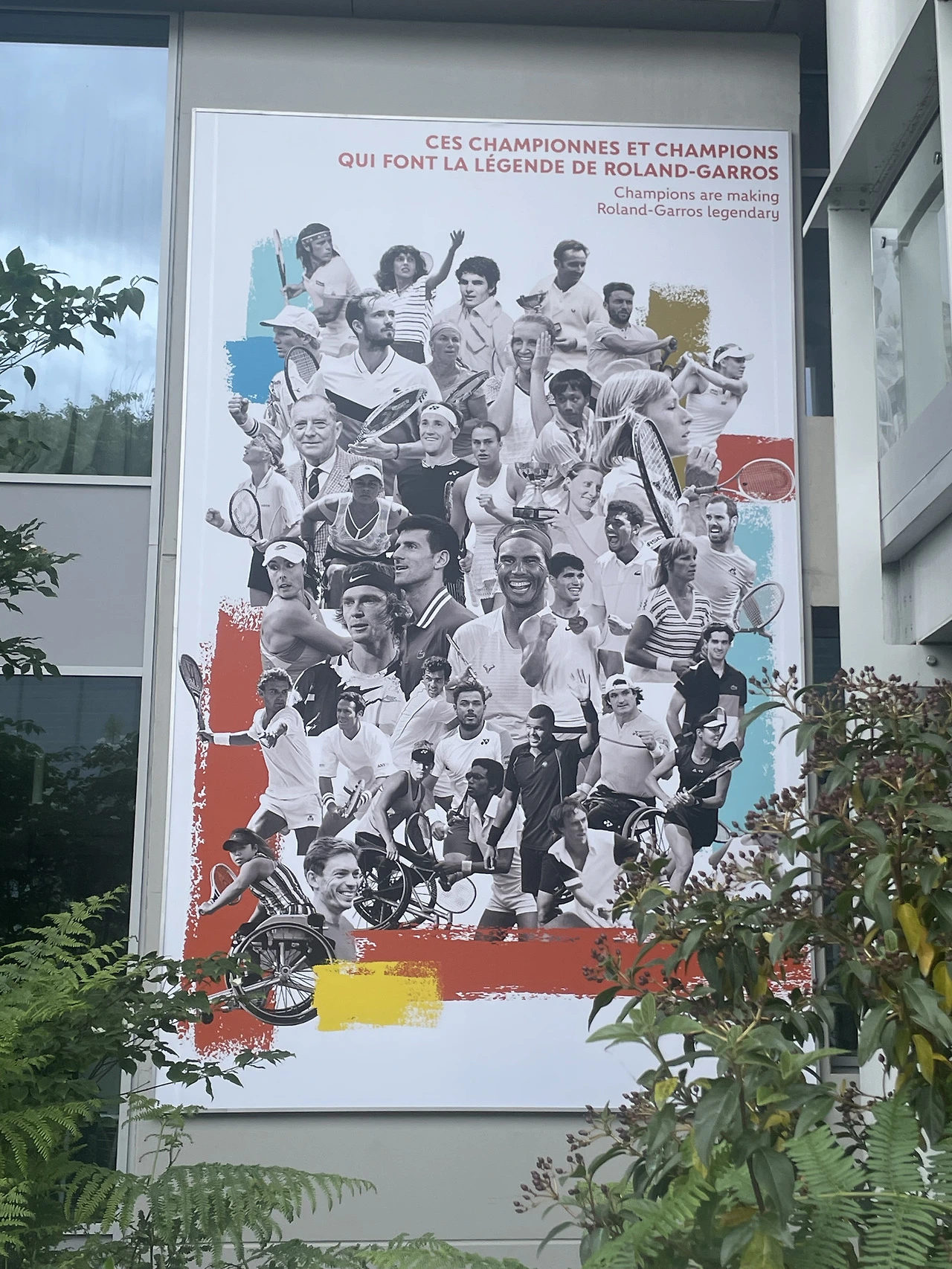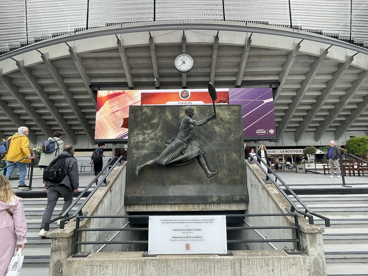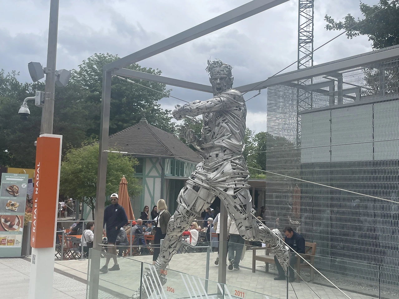 설레는 마음을 가득 품고 도착한 경기장, 메트로에서 나서자마자 빨강과 주황 그리고 갈색 그 사이 어딘가 따사로운 테라코타 색상의 물결로 세상이 가득했다. 비를 살짝 머금은 구름덕에 공기는 쌀쌀했지만 사람들이 향하는 발걸음은 감출 수 없는 기대로 가득했다. 입구에 들어서자마자 제일 먼저 발견한 것은 나달의 청동 동상. 지난주엔 이곳에서 클레이의 황제, 롤랑가로스 통산 14승에 빛나는 라파엘 나달의 은퇴식이 있었다. 경기장 곳곳에 놓인 나달의 흔적들을 보고 있으니 영광의 빅포와 그를 사랑하는 팬들이 함께 있던 그 무대에 내가 서있다는 실감이 났다.