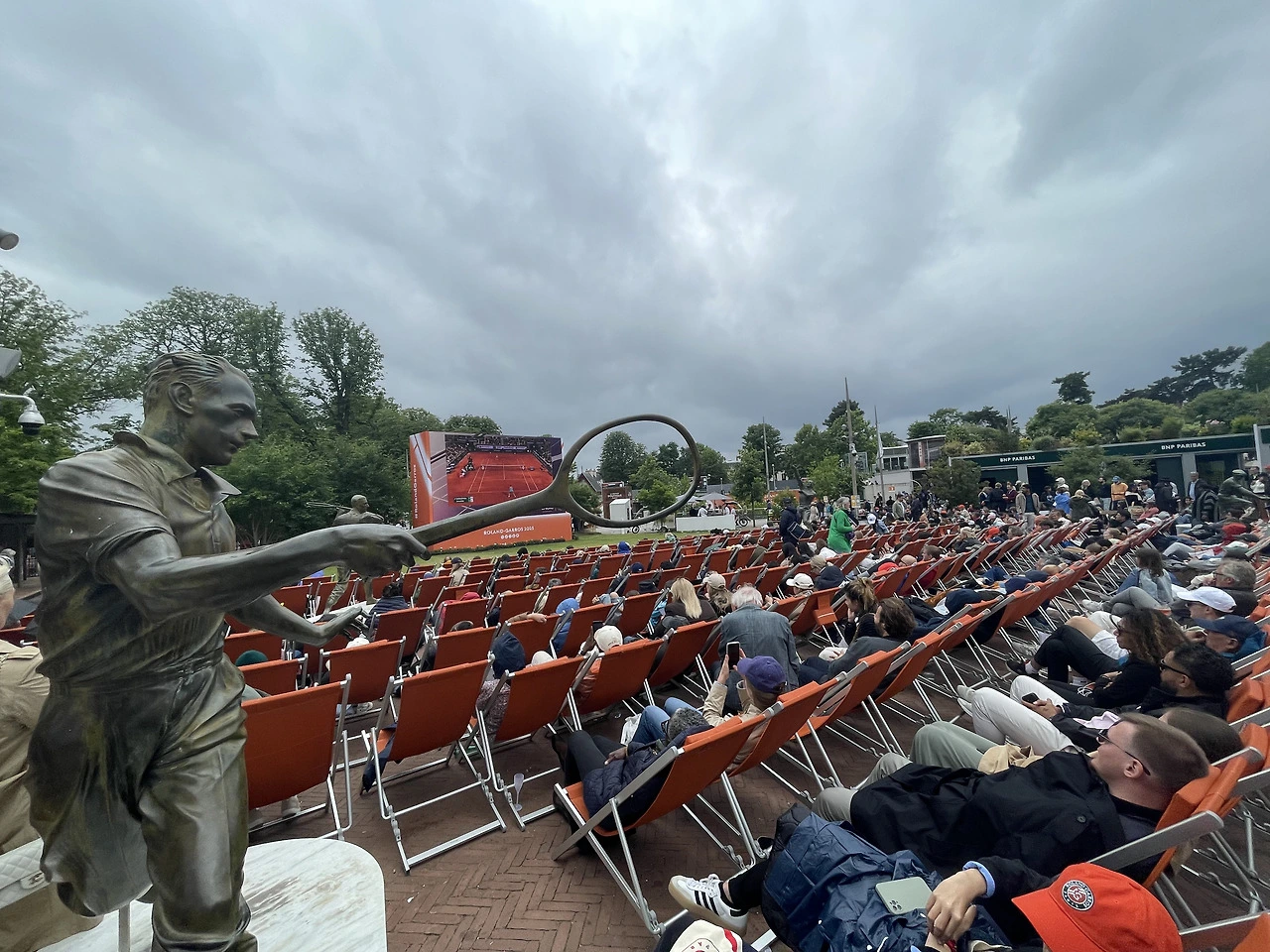 그라운드 티켓으로는 메인 코트인 필립 샤트리에까진 입장할 수는 없었지만, 관중들의 환호성을 들으며 실시간으로 경기를 즐길 수 있는 특별한 공간이 마련되어 있다. 윔블던에 ‘머레이 힐(Murray Hill)’이 있다면, 롤랑가로스엔 무스케티어 광장(The Place des Mousquetaires)이 있다! 프랑스 테니스의 전설인 장 보로트라, 자크 브륄롱, 앙리 코셰, 르네 라코스트 네 사람을 기리는 이 광장에는 초대형 스크린이 설치되어 있고, 외부 좌석이나 바닥에 자유롭게 앉아 소풍처럼 경기를 즐길 수 있다.