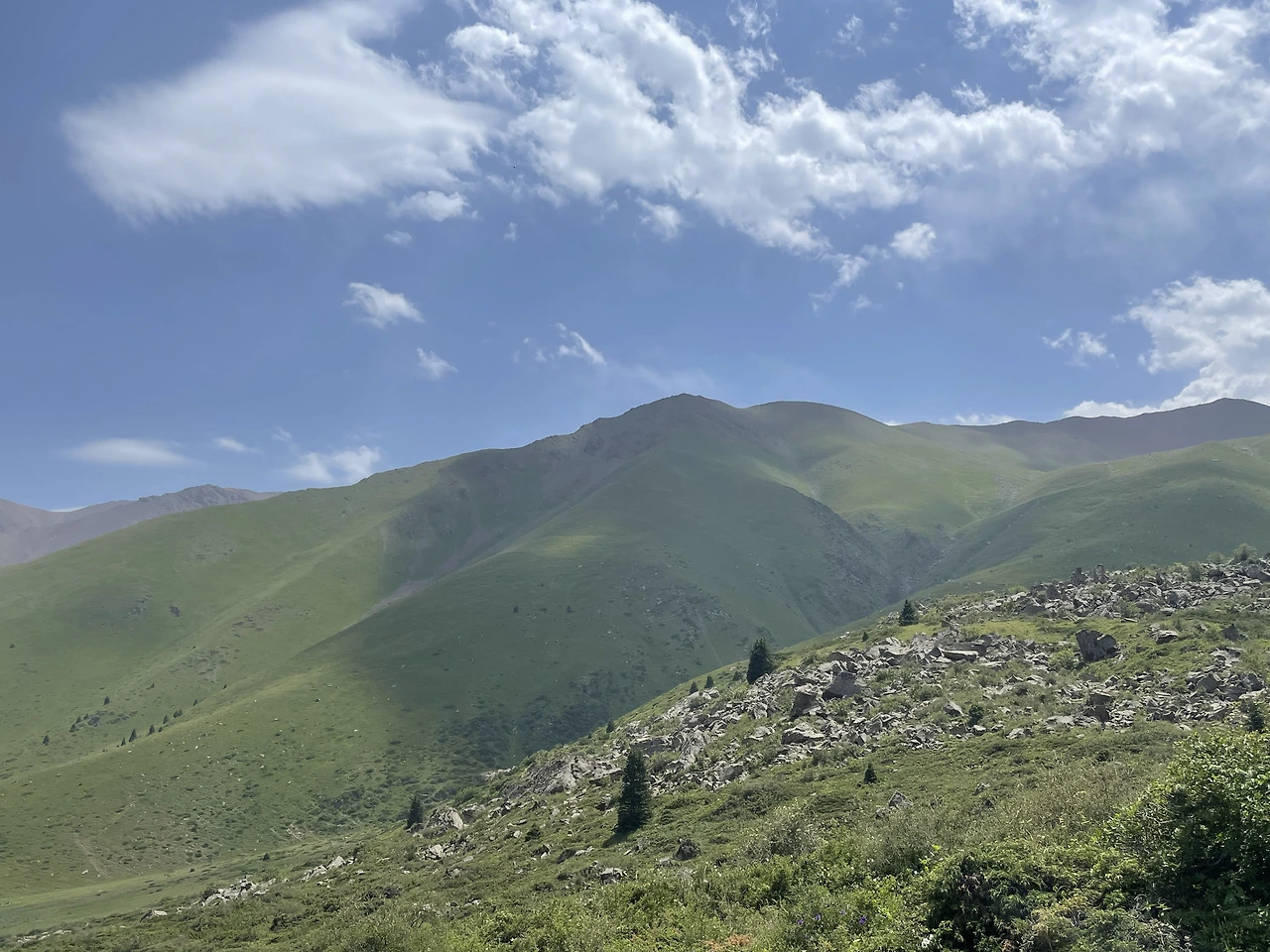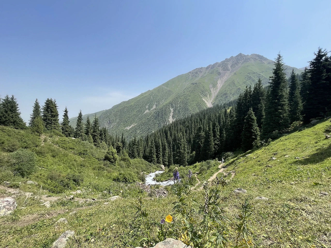 간단하게 싸 온 도시락을 먹고 숲을 벗어나면 본격적으로 두 번째 구간에 들어선다. 그야말로 멀리 고산의 초원이 펼쳐지기 시작한다. 경사도는 점점 가팔라지고, 흙길은 자갈길로 바뀌며 발걸음에 더욱 힘이 들어간다. 눈앞의 시야가 탁 트이면서 산봉우리들과 빙하수가 흐르는 계곡이 하나둘 모습을 드러내니 볼거리는 많아지는데, 초행자인 나로서는 주위를 둘러볼 여유조차 없다. 고도가 높아질수록 숨은 차오르고, 거북이처럼 느릿느릿 바쁘게 일행들을 쫓아갈 뿐이다. 잠시 멈춰 뒤를 돌아보면 풍경은 항상 같은 모양이고, 그저 산 능선이 겨우 1cm쯤 자라 있었을 뿐이었다.