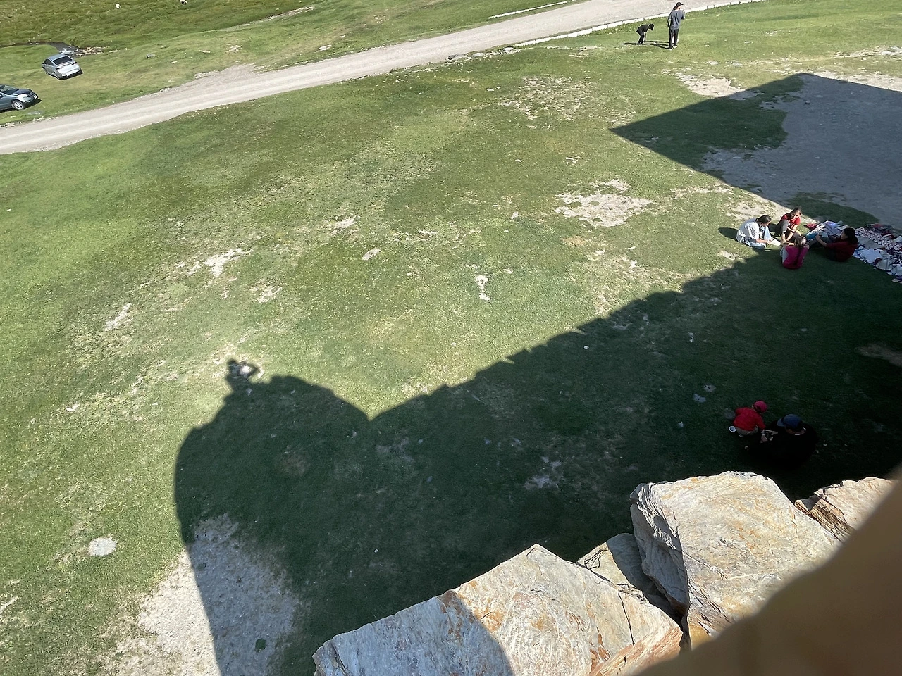원하면 건물 위도 자유롭게 올라갈 수가 있는데 하늘과 연결된 신성한 공간인 중앙돔 그리고 굽이굽이 이어지는 산맥가 냇물이 흐르는 전경이 내려다 보인다. 돌 기둥 사이 그늘을 찾아 등을 기대고 앉아 잠시 쉬었다. 멀리 여유자적 말을 타거나 연을 날리며 자연 속에 녹아든 가족단위의 사람들이 보인다. 문득 중국 국경과 가까운 오지 그중 가장 외진 고원지대에 와있다는 것이 실감이 되지 않을 만큼 아늑하고 포근함이 느껴진다. 생각보다 외국인 관광객들이 많아서 인지 이질적 문명이 충돌하지 않고 공존하며 새로운 문화를 창조하던 실크로드와 이곳이 퍽 어울린다는 생각이 들었다. 투어를 함께 온 사람들과 함께, 냇가를 따라 천천히 오래전 낙타를 타고 걸었을 길을 걸어 숙소로 돌아왔다.