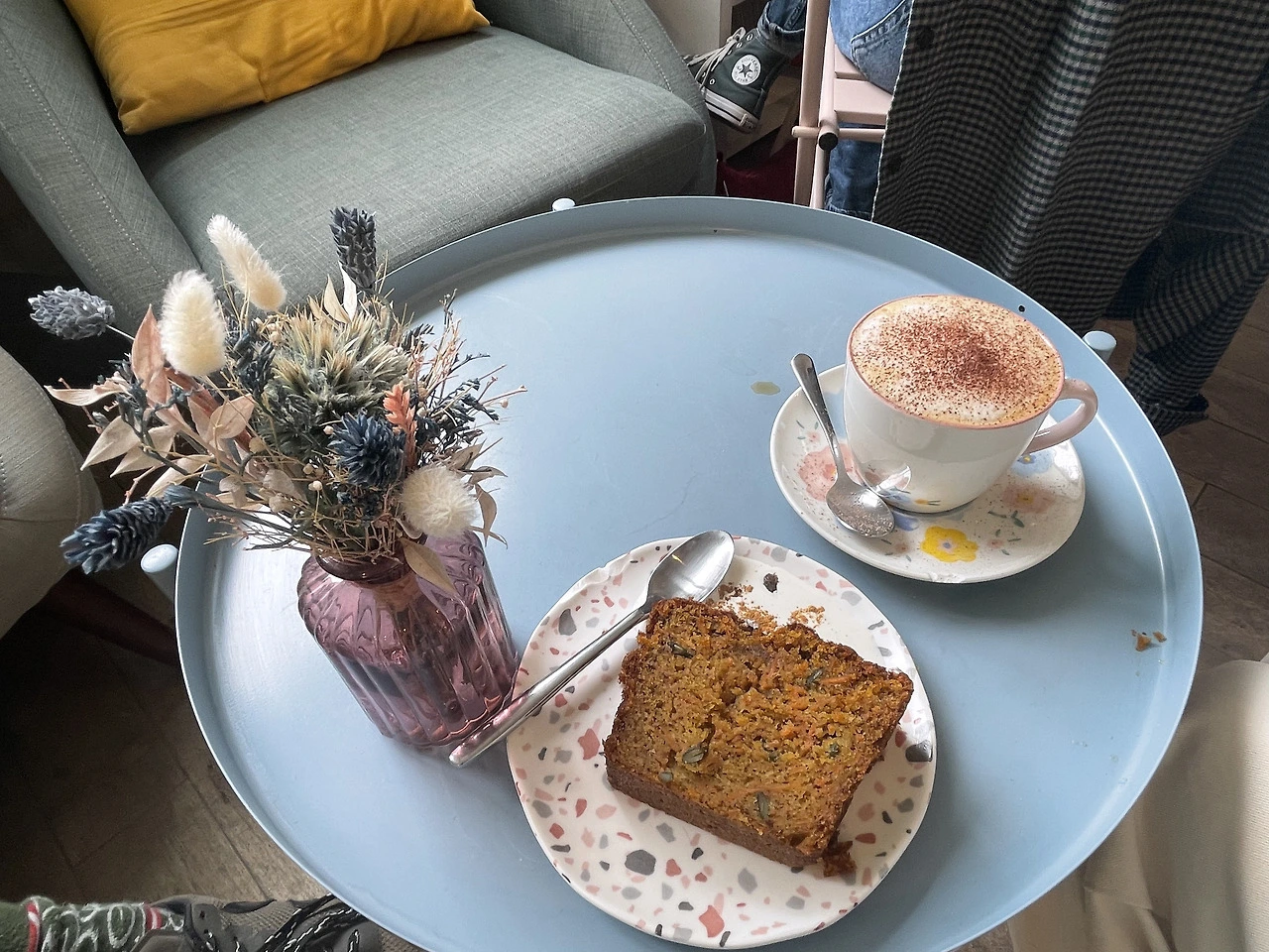그래서 이곳에 있는 것이 좋다. 빈자리가 나자마자 앉아 무릎 위에 책 한 권을 올려놓고, 따뜻한 차 한 잔에 몸을 녹이며, 엉뚱하면서도 기분 좋은 상상에 잠긴다. 언젠가 나도, 나만의 결을 지닌 책들로 벽을 채우고, 관심사가 닮은 사람들과 나직이 이야기를 나누며, 세상의 속도를 잠시 늦출 수 있는 이런 공간을 꾸릴 수 있을까. 한편엔 하늘이 내다보이는 창이 난 작은 작업실도 만들고, 아끼는 음악들은 잔잔히 흐르고, 마음을 다독이는 문장들이 공기처럼 스며드는 곳. 커피 한 잔과 슴슴하게 직접 구운 쿠키의 온기가 녹아있는 지극히 사적이지만 누구에게나 열려 있는, 그런 서재 같은 공간 말이다.