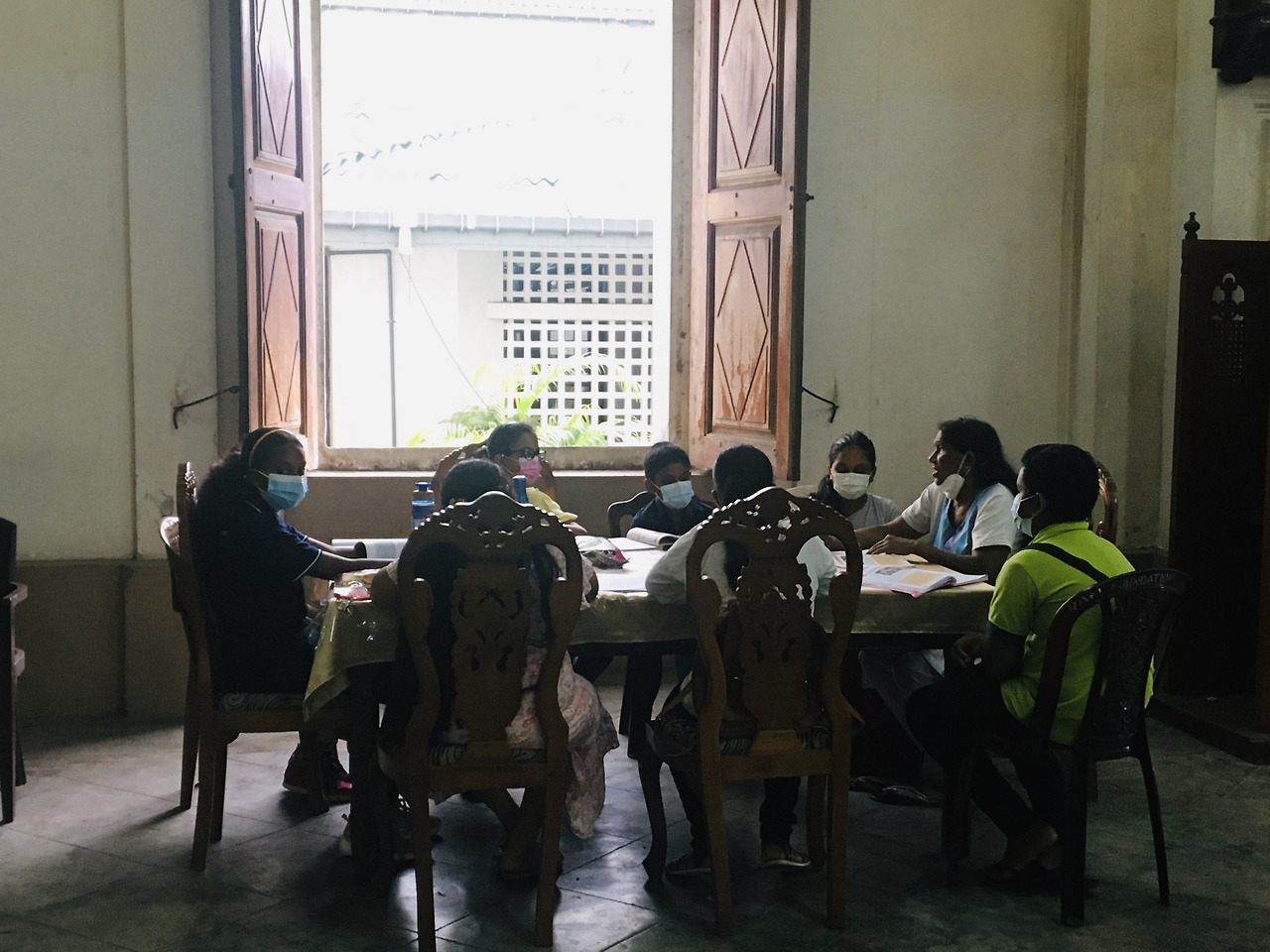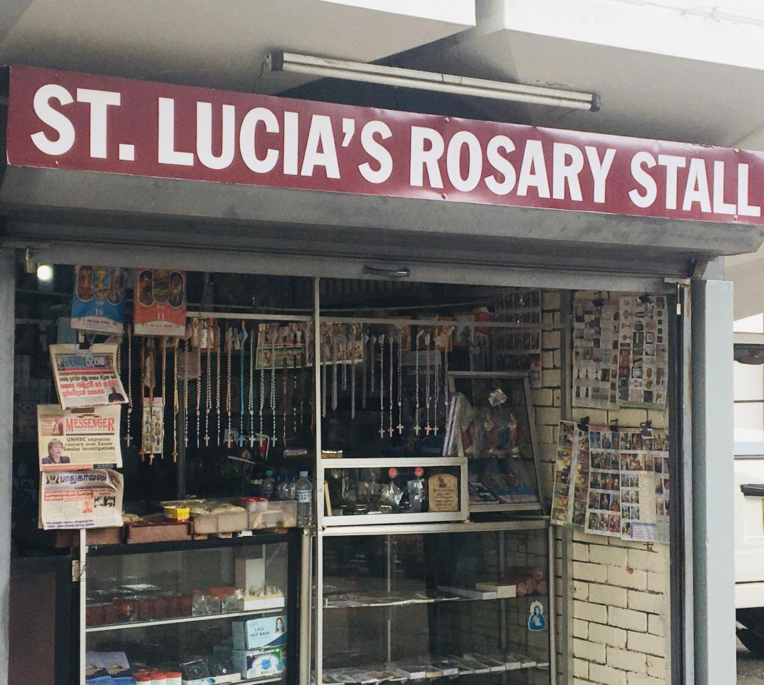오늘은 성물방 문도 열려있었다. 가톨릭 관련 신문, 알록달록 형형색색을 자랑하는 묵주들이 가지런히 진열되어 있다. 특히 이곳의 잇템은 형광인데 성모님 상도 묵주도 모두 노랑 주황 형광색이다. 웃프지만 단전이 일상화된 요즘 랑카에 집마다 기도를 위해 더 유용하지 않을까 싶다. 성전 밖에는 삼삼오오 그룹을 지어 이야기꽃이 피어나고 있다. 무엇을 그렇게 열심히 하나 보니 소규모로 진행되는 성경 공부 모임이었다. 이 역시 본당 속 서로에게 가르침과 배움이 되던 명동성당의 시간을 떠오르게 한다. 매주 교육관에 모여 청년 성서모임 공부를 하고 솔봉이 친구들을 위한 교안을 만들던 그때의 우리도 이렇게 반짝반짝 빛이 났을까?