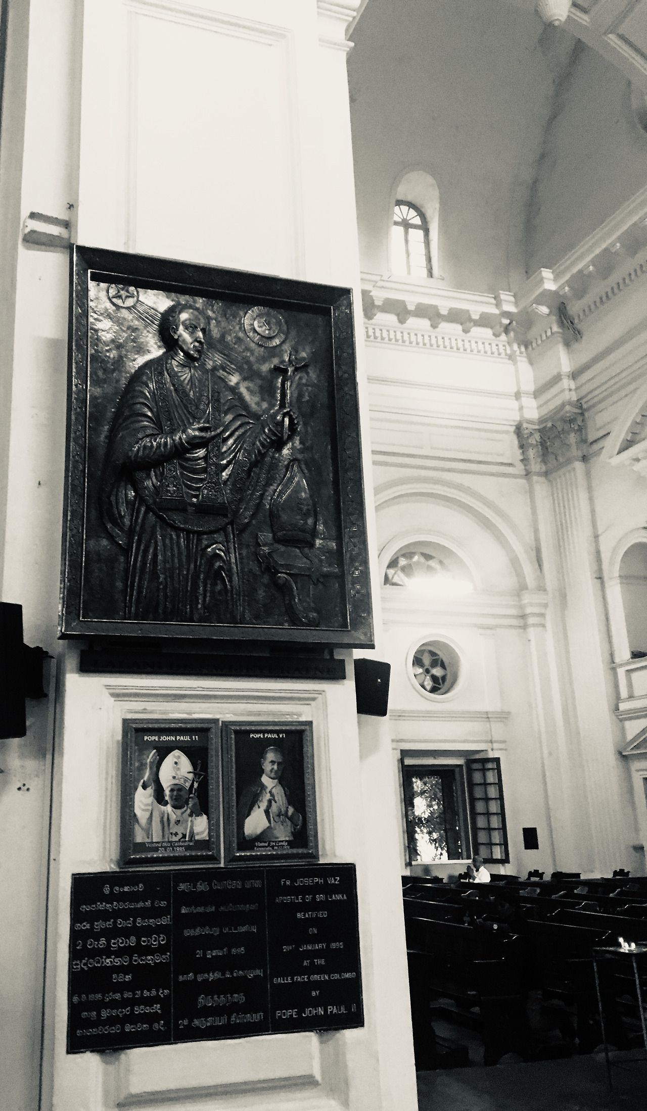 그리고 성당 양측 벽면 통로에는 두 눈을 의심케 하는 오픈형 고해소가 놓여 있었다. 이런 간략 버전은 처음인지라.. 과연 이 고해소가 현재 진행형 성사를 위해 사용되고 있는 공간인지 한참 생각에 잠겼다. 이곳에서 성사를 봐야 한다면 나 같은 내향형 인간은 한 시간쯤 고민하며 성전을 세 바퀴 정도 돌다가 그냥 집으로 돌아가지 않을까 싶다. 또 성당 벽면에는 교황 요한 2세로부터 시복 받은 Joseph Vas 신부님의 청동화도 함께 있었다. 1995년 교황 바오로 2세 직접 방문 당시 주신 날 축성된 것으로 이곳이 얼마나 역사적으로 중요하고 스리랑카 가톨릭에게 중요한 공간인지를 보여주고 있다.