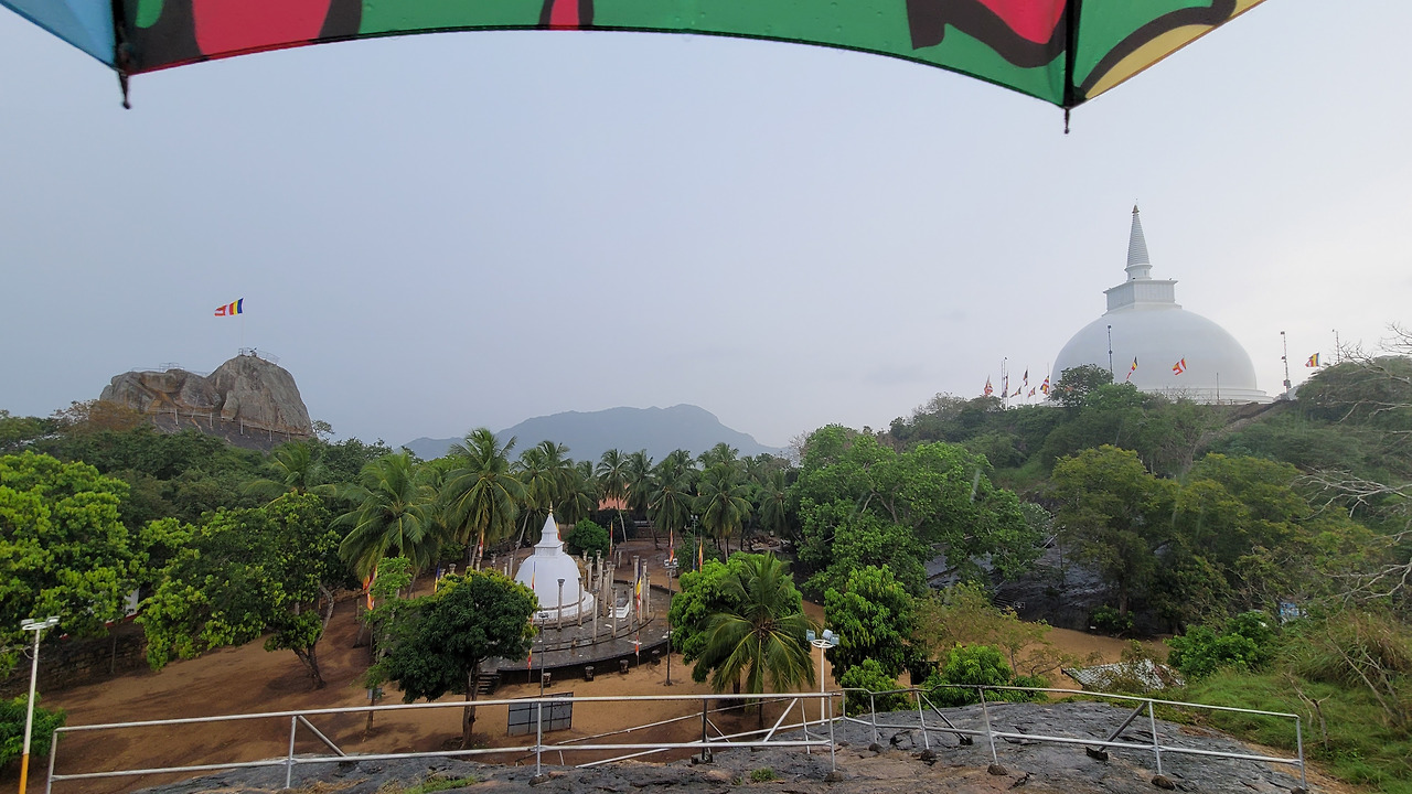 일단 첫 행선지인 이수르무니야 사원 (Ishurumunyia) 사원 밖에서 잠시 비가 멈출 때까지 기다렸다. 그 장대비 속에서도 가족 단위의 사람들은 아랑곳없이 연이어 사원으로 들어선다. 고민 끝에 일단 계획을 우회하여 아누라다푸라에서 14km 동쪽으로 떨어진 미힌탈레(Mihinthale)에 먼저 향한다. 가는 길에 비가 그친다면 너무 감사할 것이고 아니라도 차창밖으로 도시 풍경을 구경할 수 있을 테니까. 간간히 천둥과 번개가 치긴 했지만 다행히도 비가 많이 잦아들었고 무사히 입구에 도착했다. 비에 젖어 한층 운치가 가득해진 사원 초입엔 산 정상에 있는 부처님의 머리카락을 봉안한 마하 세야 불탑까지 1840개의 계단이 아득히 펼쳐져 있다.