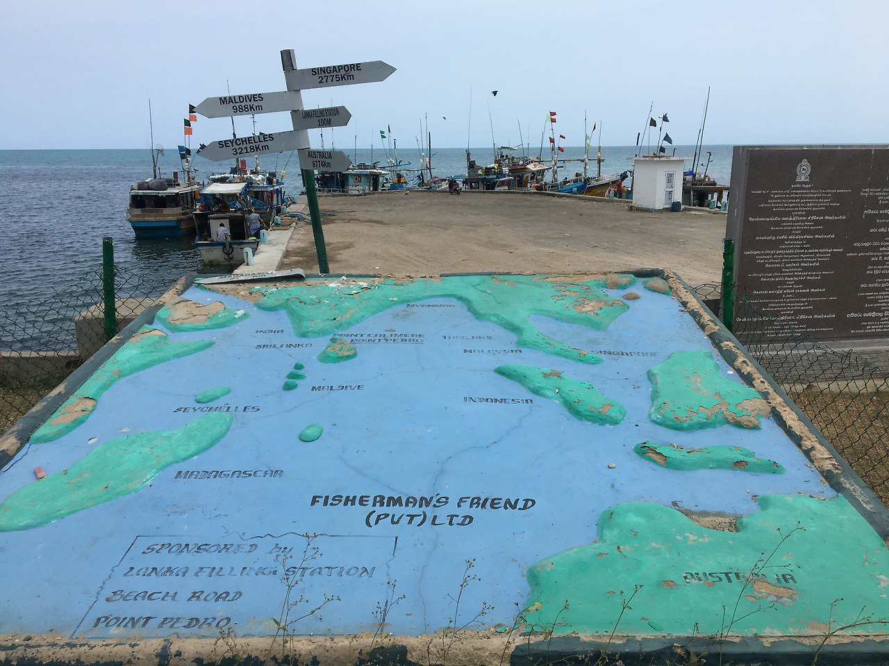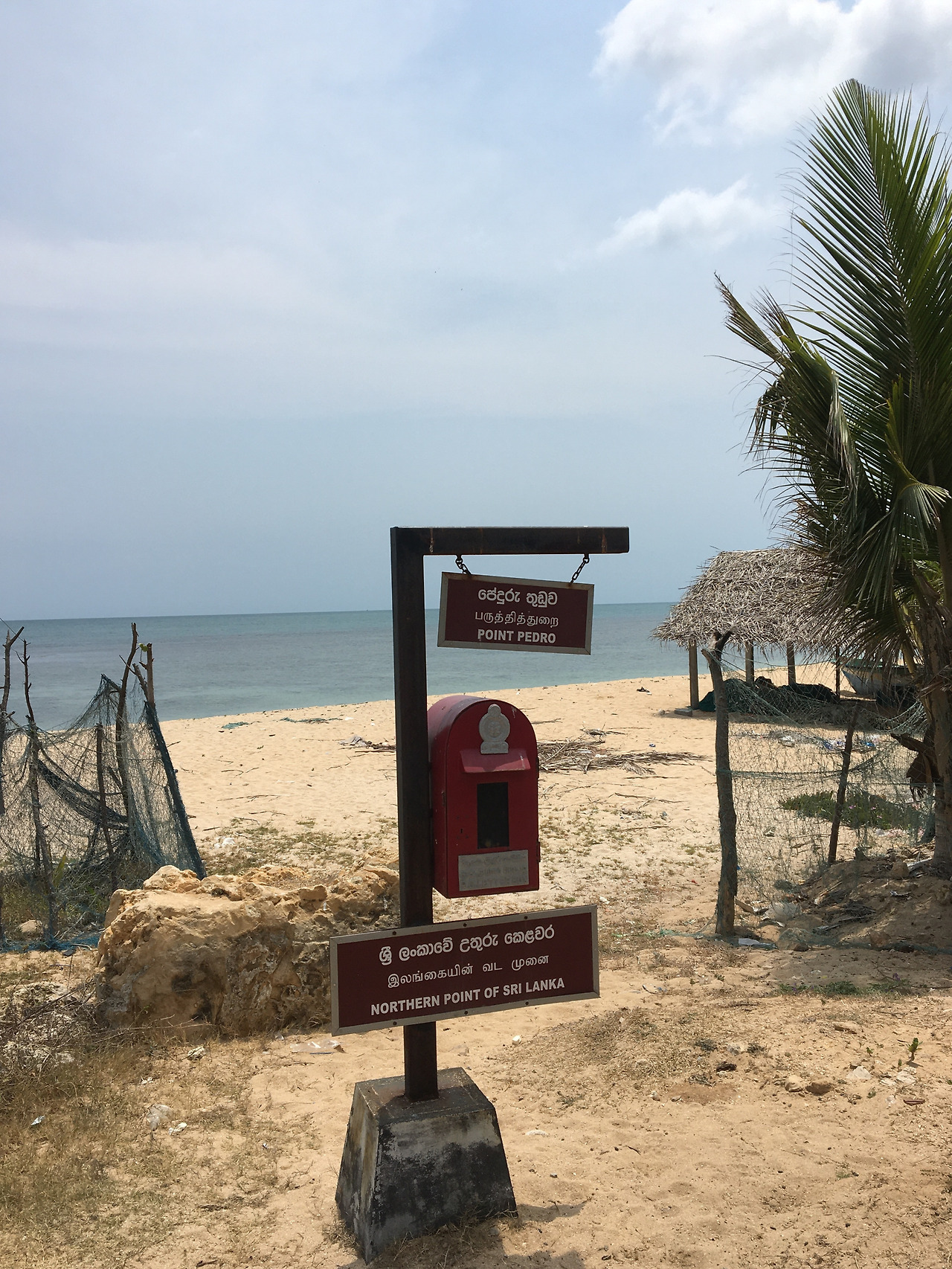구글 지도를 따라가다 보면 갑자기 목적지에 도착했다고 뜨는데 정말 여기라고?라고 생각하는데서 내리면 길가에 작은 안내판이 보인다. 그렇게 긴 부둣가를 천천히 걸어 걸어가다 보면 그 끝에 스리랑카 최북단 푯말이 보인다. 날이 좋은 날엔 바다 건너 인도 땅이 보이고, 멀리 소리치면 누군가 답을 해주기도 한다던데 (믿거나 말거나)... 다행히 바람이 많이 불지 않아 조업을 하는 어부분들께 방해되지 않게 잔잔히 바다 멍을 즐길 수 있었다. 그리고 이곳에서 멀지 않은 곳에 위치한 등대와 우체통 그리고 조형물들을 하나씩 보물찾기 하듯 찾아간다.