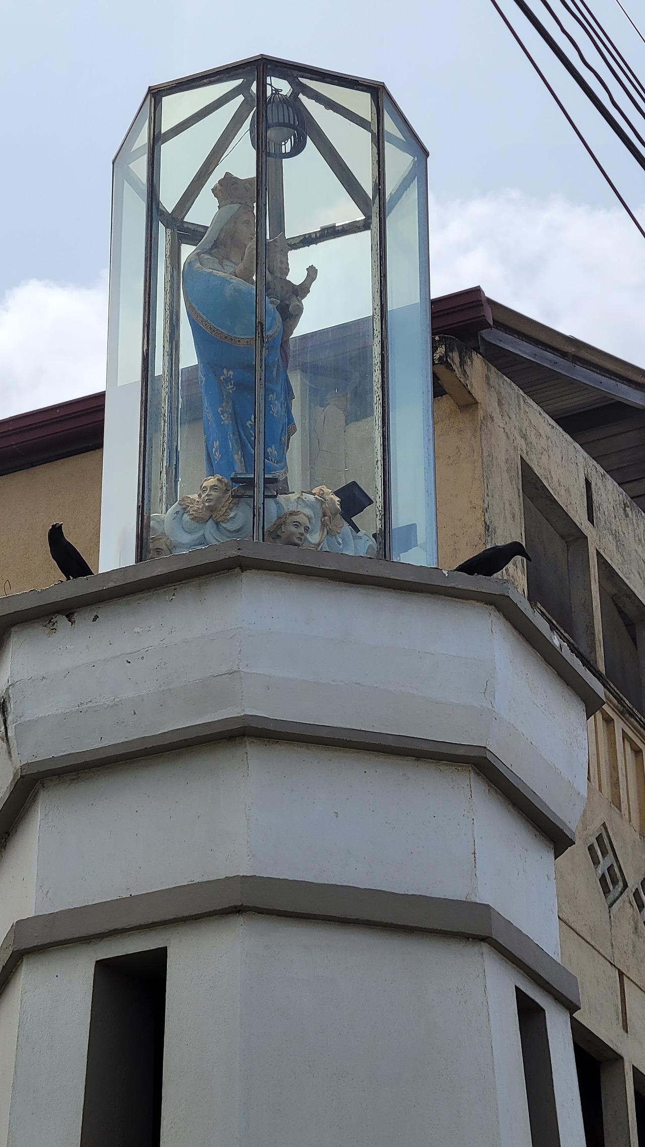 18센티 정도의 아담한 이 성모자상 조각의 받침대에는 이렇게 세 번의 파도가 물결치고 있고 오늘도 별처럼 많은 사람들이 어머니의 발 밑에 모여 기도와 기적의 은총을 청하고 있다. 2007년 지역사회의 노력으로 마타라 성지는 참사 후 복구를 마쳤지만 성전 곳곳에는 그날의 상처가 고스란히 남아있다. 제대 오른쪽에는 파도에 휩쓸려 양팔만 앙상히 남은 십자고상이 걸려있다. 깨져버린 주님의 몸은 십자가 밑 유리함에 보관 중이라는데 어쩐지 자신의 몸이 부서지는지도 모르고 단 한 명의 자식이라도 더 살리고자 간절히 두 손으로 십자가를 붙들고 계시던 게 아닐까 생각이 들었다.